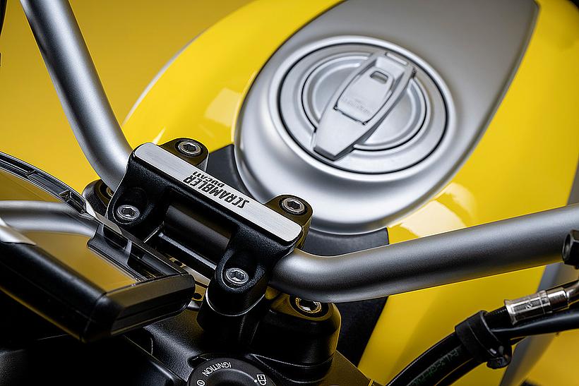 Die Ducati Scrambler Icon zeichnet sich durch einen überarbeiteten Lenker aus, der tiefer und näher am Fahrer liegt und so die Fahrzeugkontrolle erleichtert. Ein weiterer Vorteil des niedrigeren Lenkers ist das Plus an Komfort.