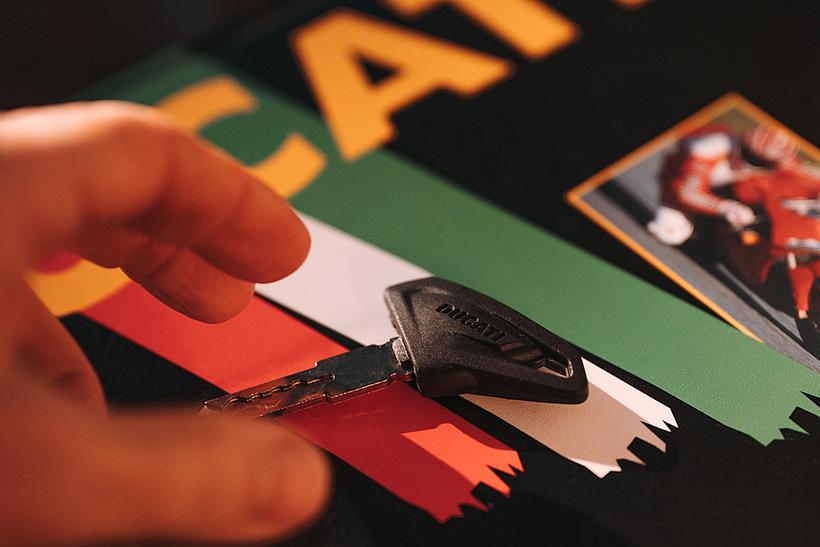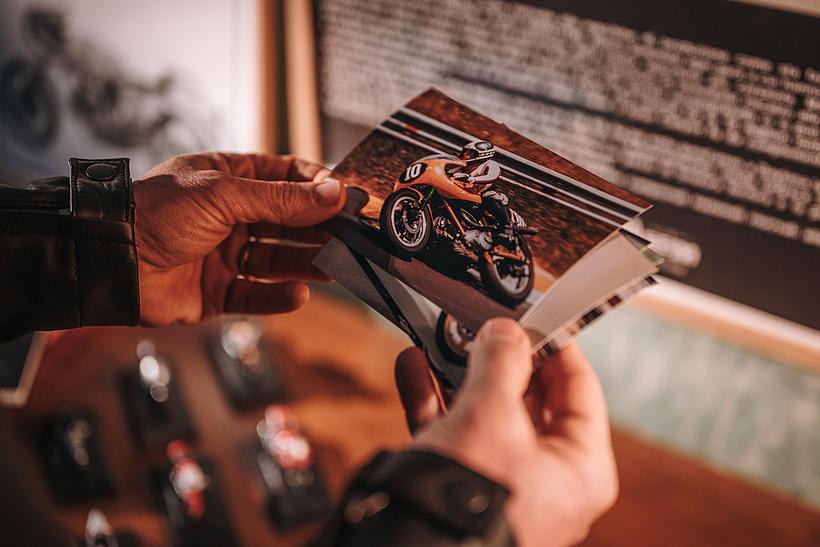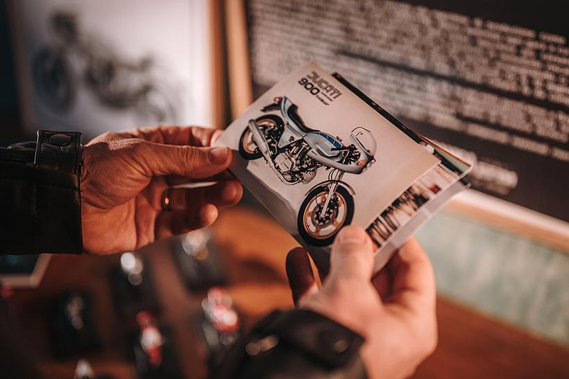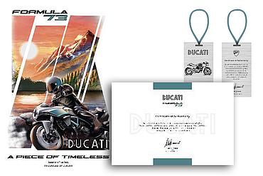 Jedes Motorrad wird mit einem Echtheitszertifikat sowie einer Sammlung historischer Bilder und Skizzen des Ducati Style Centres geliefert, die in einer speziellen Box zu finden…