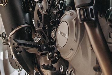 Eine Kleinigkeit: Man könnte ein paar Euro an Produktionskosten sparen, indem man einfache Stahlfußrasten verwendet, aber das wäre nicht Ducati-like. Auch die Fußrasten sind aus einer Aluminiumlegierung gefertigt und perfekt gestaltet.
