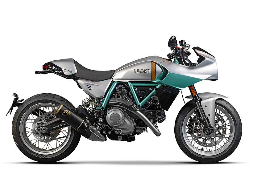 Die Ducati Formula 73-Reihe ist eine moderne Neuinterpretation der legendären 750 Super Sport Desmo von 1973. Schlank und elegant, vermittelt dieses Motorrad dank seiner minimalistischen, dennoch raffinierten Ästhetik Agilität. Es vereint den rebellischen Geist der Urban Café Racer mit dem zeitlosen Charme eines Motorrads, das von vielen Sammlern als das bedeutendste in der Geschichte von Ducati angesehen wird. Die silber- und aquagrüne Lackierung der auf 873 Stück limitierten Formula 73 basiert auf gründlichen Recherchen im historischen Ducati-Archiv. Der vertikale Goldstreifen auf dem Tank erinnert an den ursprünglichen unlackierten Bereich der 750 Imola Desmo, der es dem Team ermöglichte, den Kraftstoffstand ohne zusätzliche Instrumente und damit ohne Gewichtszunahme zu überwachen.