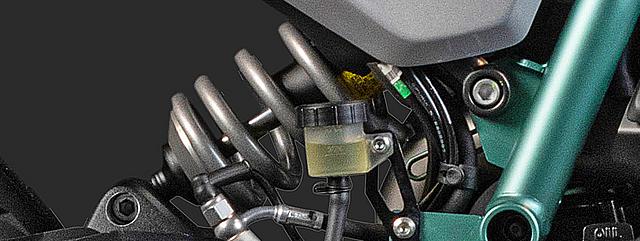 Sowohl die 41-mm-Upside-down-Gabel als auch das Federbein stammen aus dem Hause Kayaba. Das Fahrwerk mit 150 mm Federweg vorne und hinten sorgt für ausgezeichnete Traktion auf jedem Terrain – egal, ob man sich durch den Großstadtdschungel kämpft oder eine kurvenreiche Bergstraße bezwingen möchte.