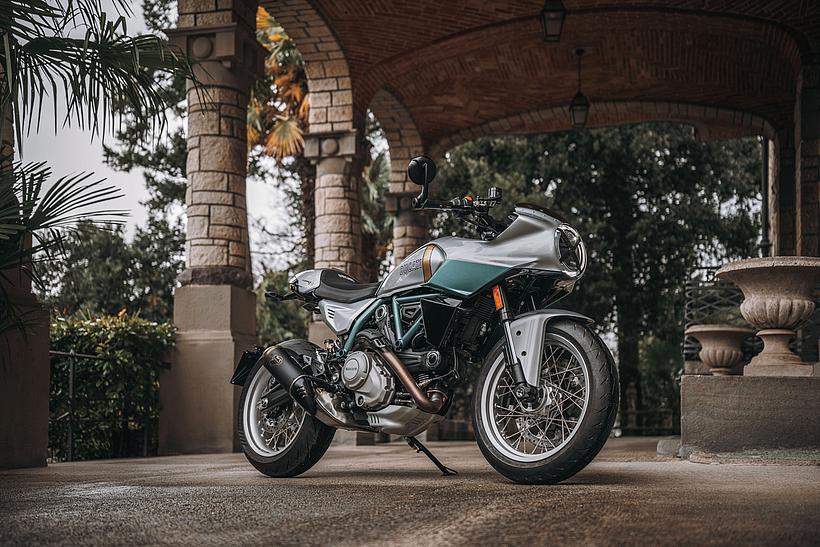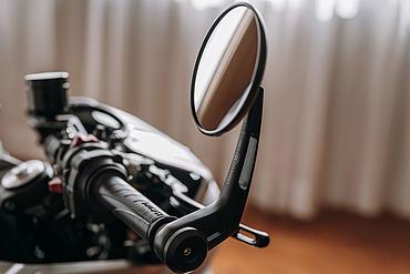 Café-Racer sind Motorräder, die ihren Ursprung in den 1960er Jahren haben und ursprünglich für schnelle Rennen zwischen Cafés gebaut wurden. Sie zeichnen sich durch ein minimalistisches Design und eine sportliche Ausrichtung aus. Die Clip-on-Stummellenker und die Bar-End-Spiegel – außen am Lenkerende montiert – sowie die kurze, sich verjüngende Verkleidung und das Heck unterstreichen genau diesen Charakter dieses Sammlerstücks.