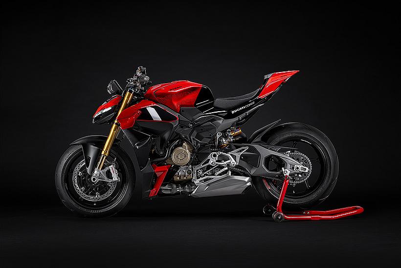 Die Ableitung von der Panigale V4 ist nun direkter denn je: Der Motor bleibt in derselben Konfiguration – der Unterschied von zwei PS ergibt sich aus den Unterschieden bei der Ansaugung – ebenso wie das Chassis und die elektronischen Lösungen. Erstmals hat Ducati entschieden, die Technologie und Leistung der Panigale V4 ohne Kompromisse auf ein Naked Bike zu übertragen und ein Motorrad zu schaffen, das das Beste aus beiden Welten vereint: Rennstreckenhandling wie bei einem Supersportler und den Fahrspaß eines Naked Bikes auf der Straße.