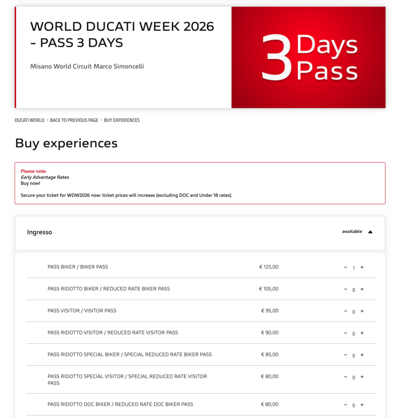 WDW-Tickets können bis 5. Juli auf ticket.ducati.com gebucht werden.