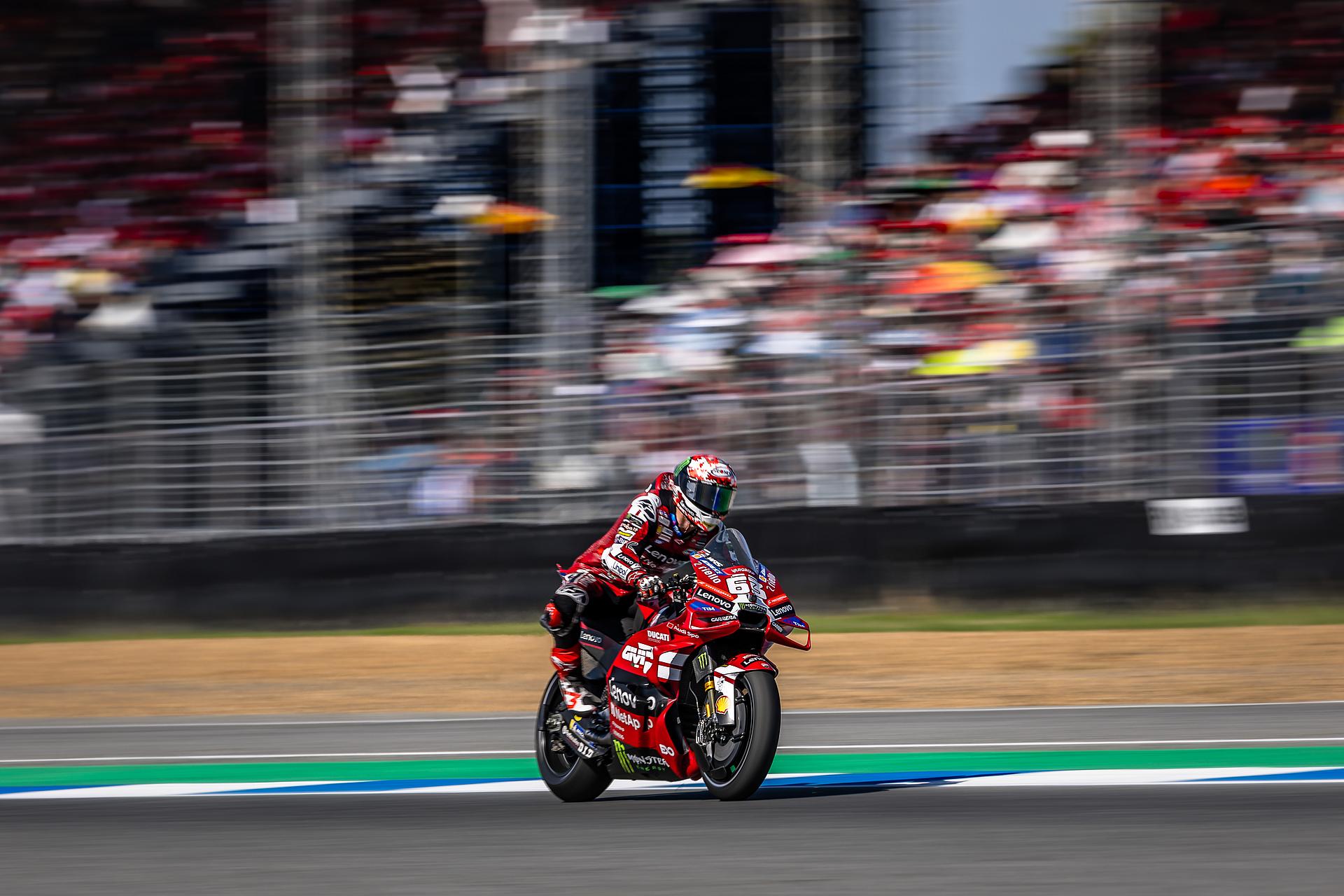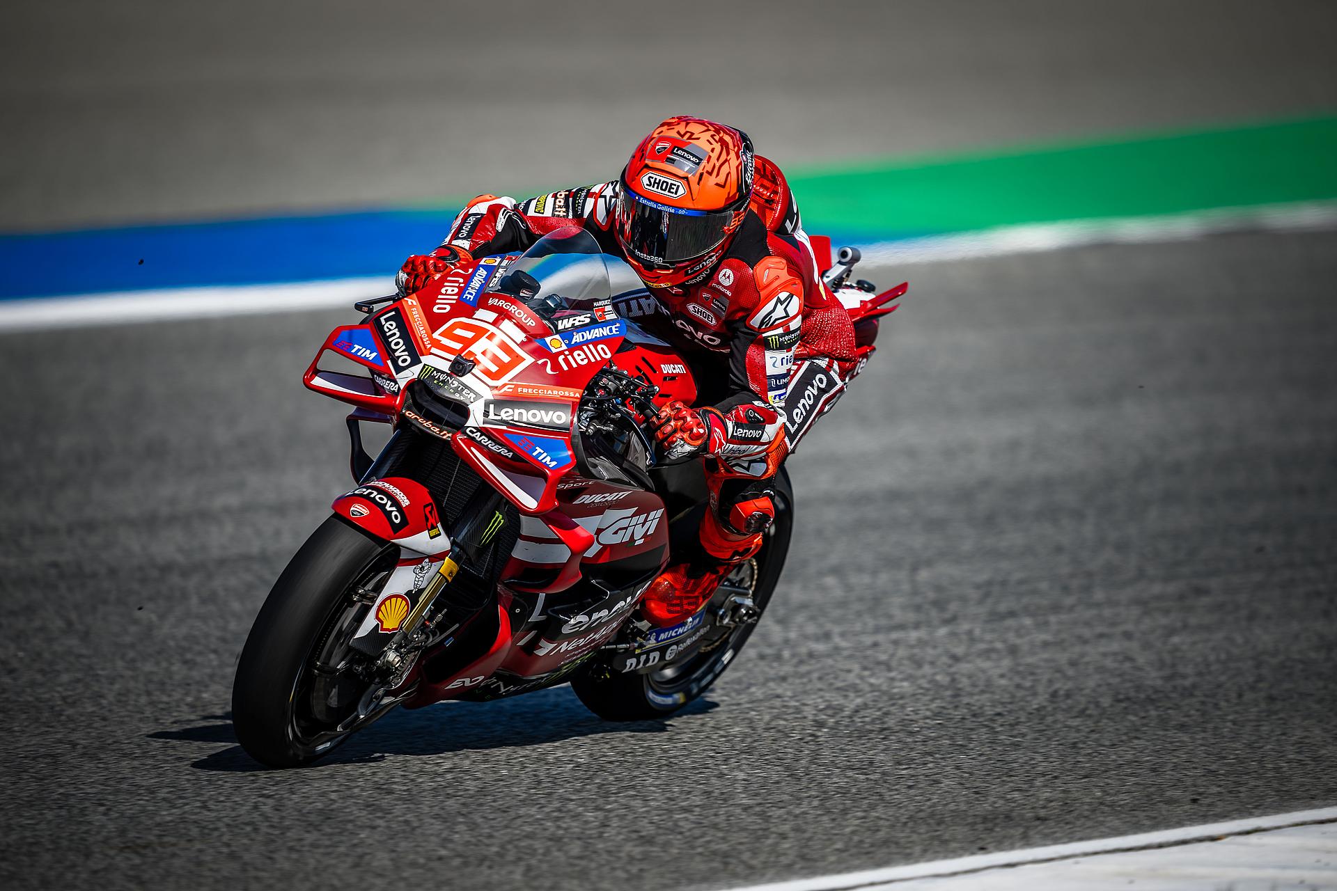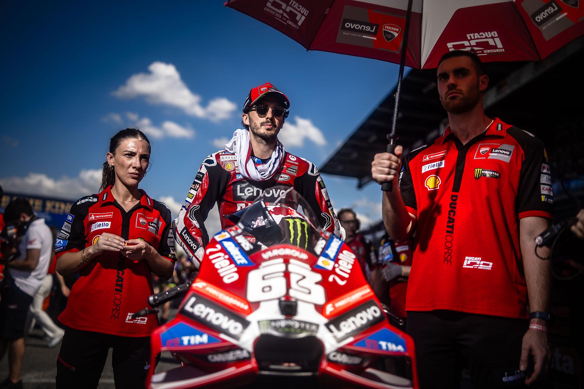 Beim Grand Prix am Sonntag musste Marc Márquez das Rennen im Kampf um das Podium nach einem Schaden am Hinterrad aufgeben. Francesco Bagnaia kam wie im Sprint auf Platz 9 ins Ziel. Bagnaia machte in den ersten beiden Runden vier Positionen gut, bevor er sich in der Schlussphase auf den siebten Platz vorarbeitete und schließlich das Rennen als Neunter beendete. Nach einem guten Start aus der ersten Startreihe kämpfte Márquez bis zur 21. Runde um das Podium, bis ein Schlag auf einem Curb zu einem Schaden der Hinterradfelge führte, wodurch der Reifen Druck verlor.