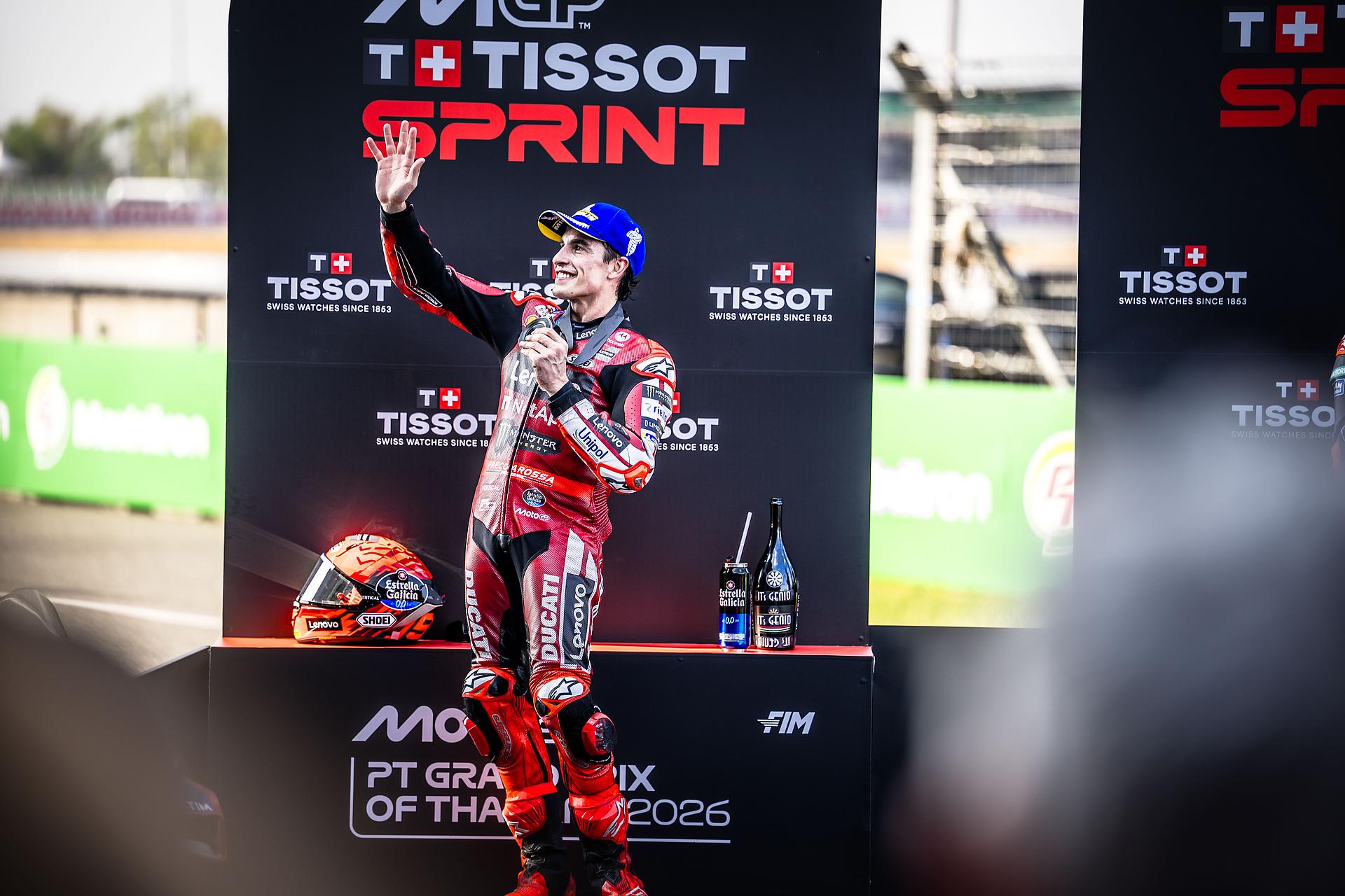 Beim anschließenden Saisonauftakt-Sprint übernahm Marc Márquez in der ersten Kurve die Führung und lieferte sich in den ersten beiden Runden zunächst ein Duell mit Bezzecchi und dann mit Acosta. In der Schlussphase, nachdem er seinen Gegner am Ende der vorletzten Runde überholt hatte, musste Marc aufgrund einer Strafe der Rennleitung einen Platz abgeben. Bagnaia kämpfte sich auf Rang acht vor und überquerte die Ziellinie schließlich als Neunter.
