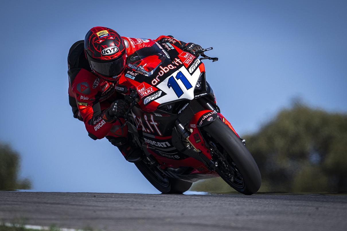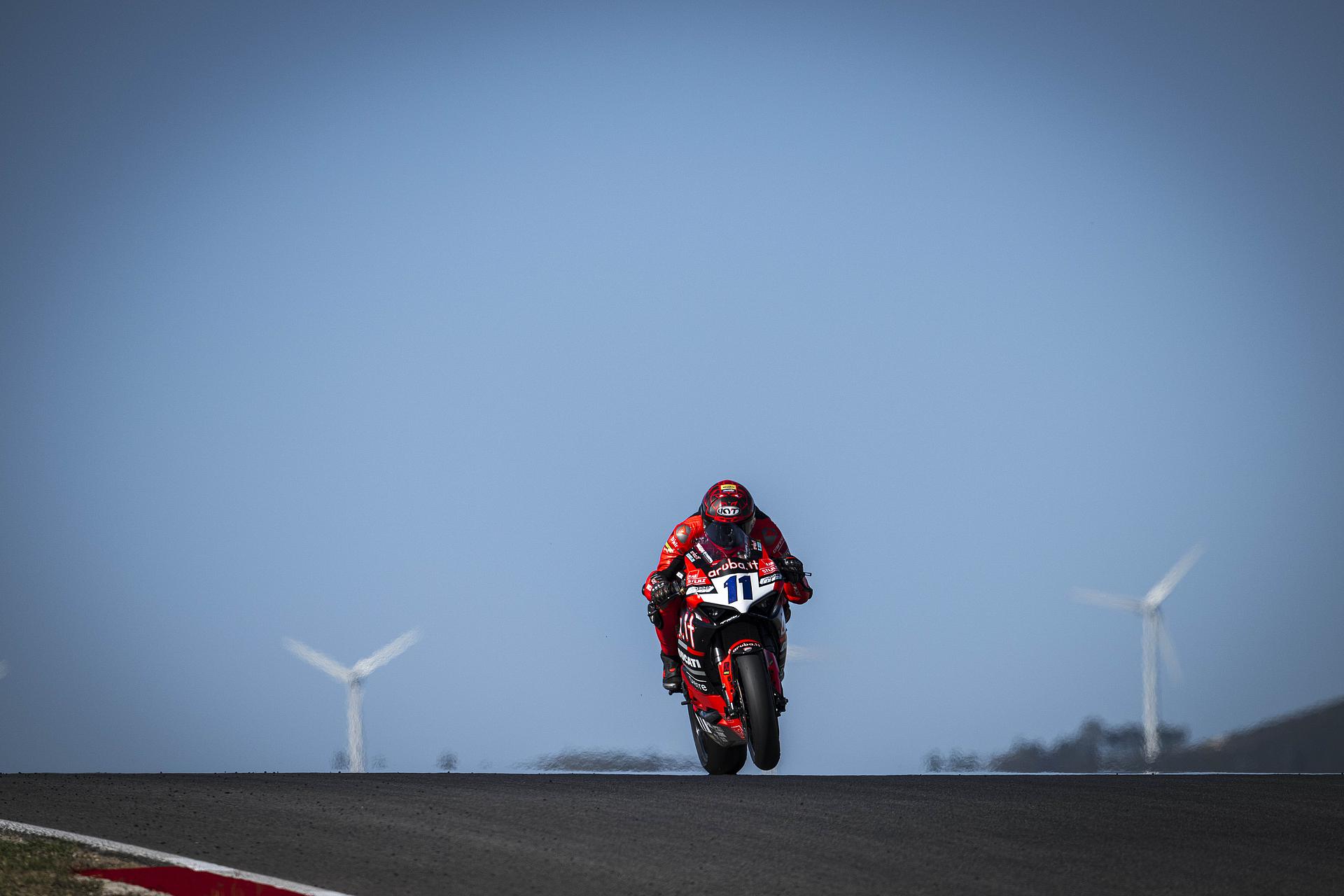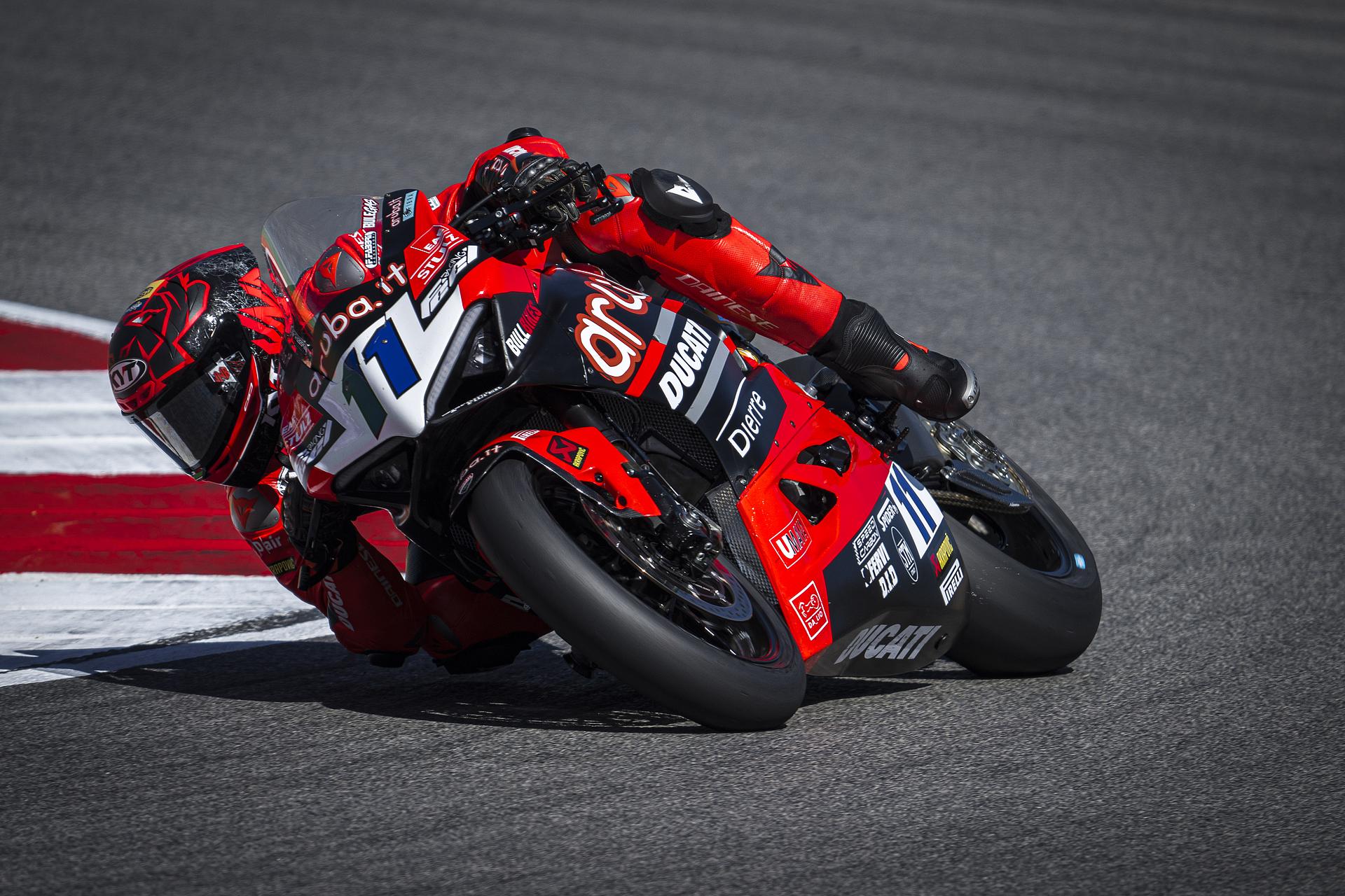 Nicolò Bulega beendet das triumphale Wochenende in Portimao als neuer WorldSSP-Weltmeister mit dem zweiten Platz in Rennen 2 nach einem spannenden Zweikampf mit Manzi (Yamaha) in der letzten Runde. Sein Rückstand auf Manzi Betrug lediglich 0,084 Sekdunden!