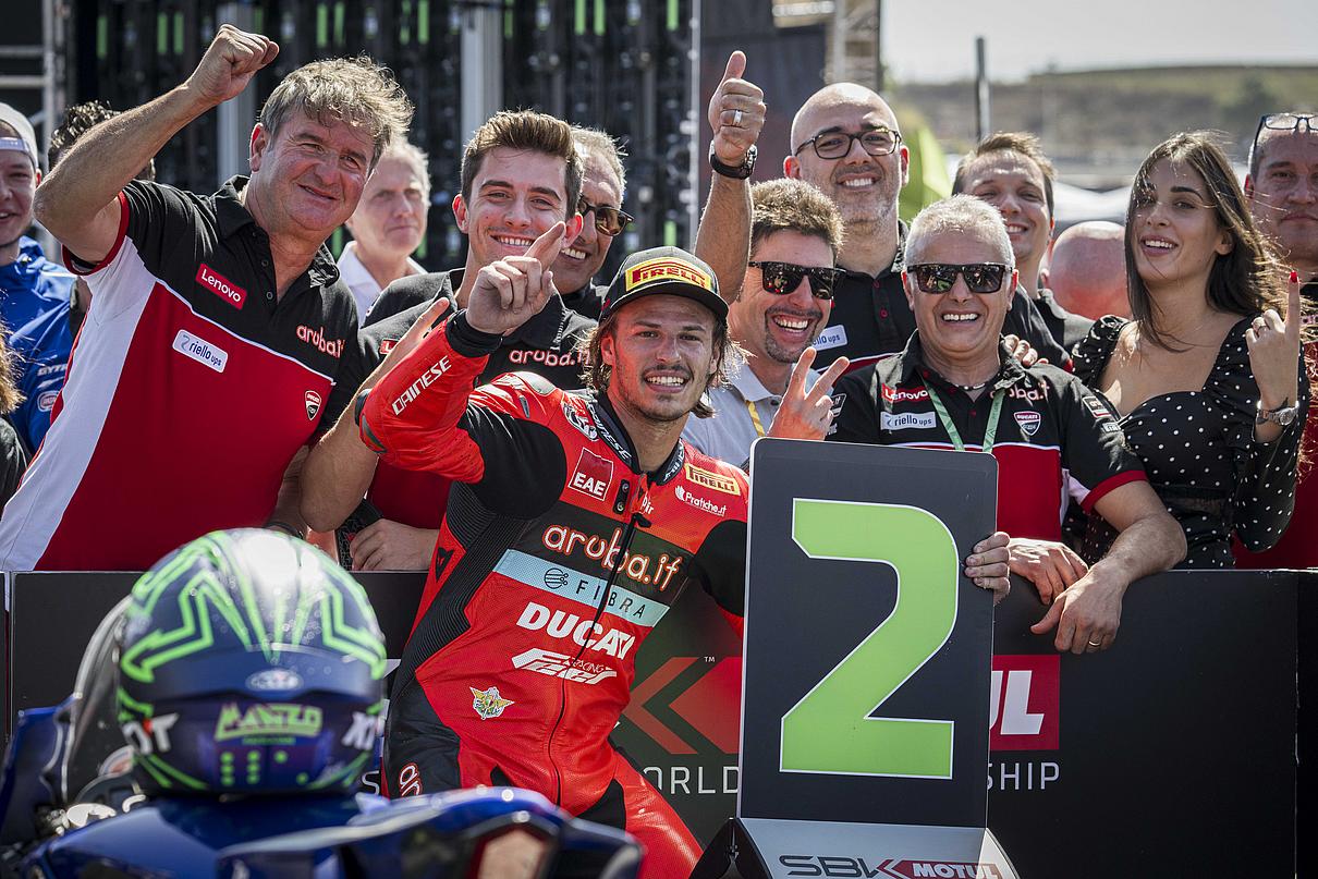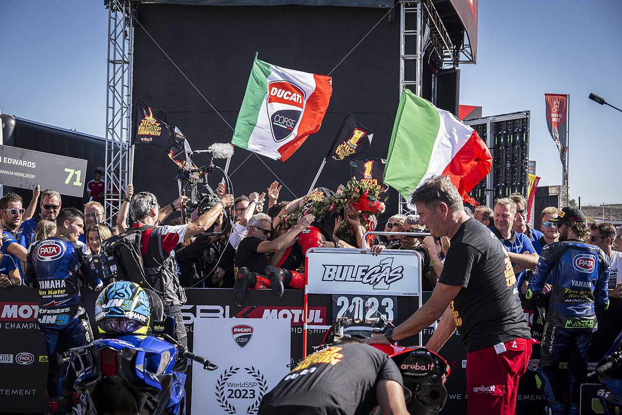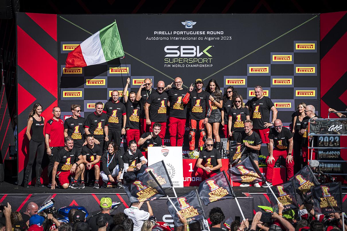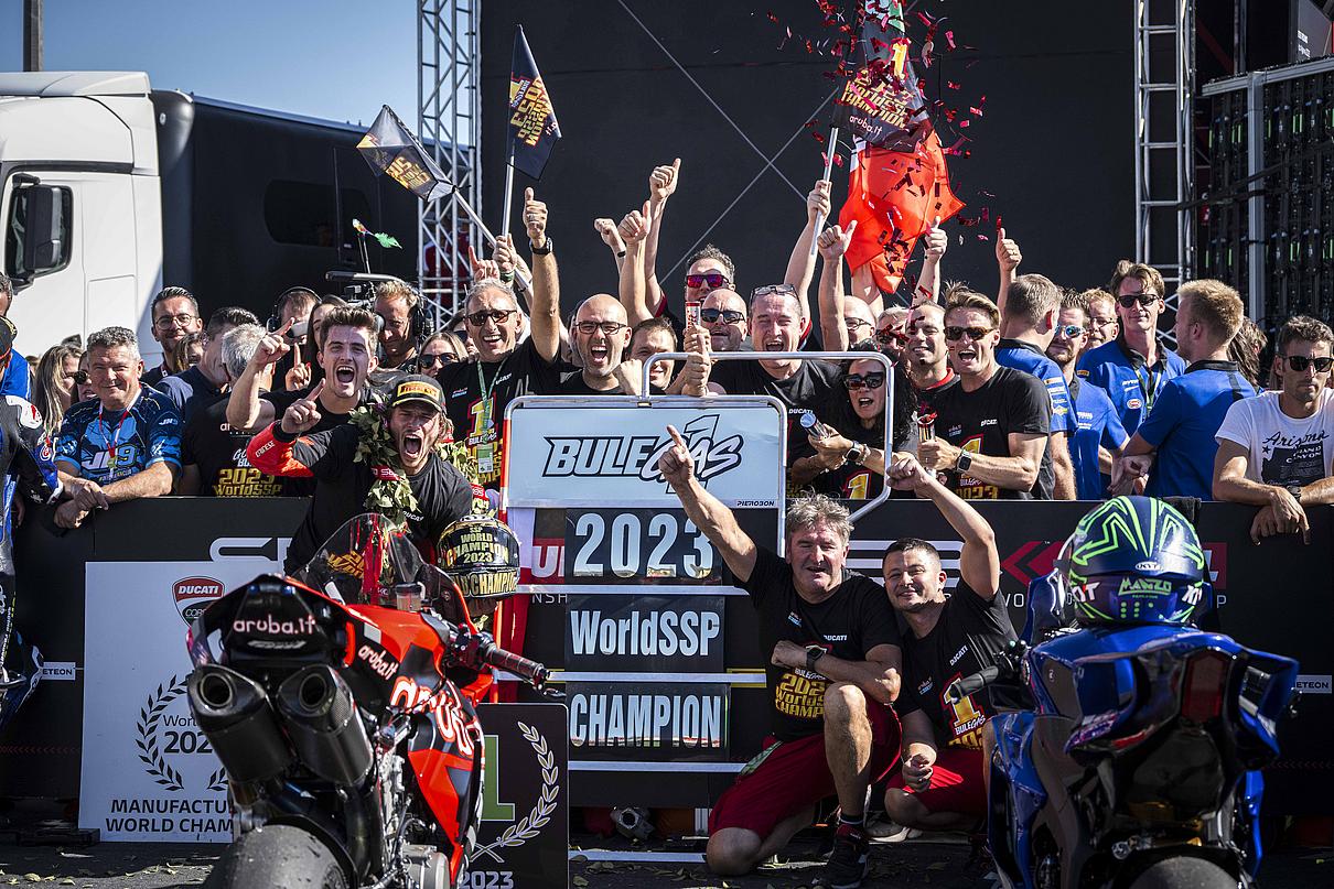 Das Aruba.it Racing Team WSSP und Ducati Bologna können mit diesem Ergebnis auch den Gewinn des Hersteller-Weltmeistertitels in der Supersport-Klasse feiern. Dies ist ein äußerst bedeutendes Ergebnis für den Motorradhersteller aus Bologna und unterstreicht die herausragende Arbeit, die gemeinsam mit den Satellitenteams geleistet wurde, um die Panigale V2 zum Meisterschaftsgewinn zu führen.