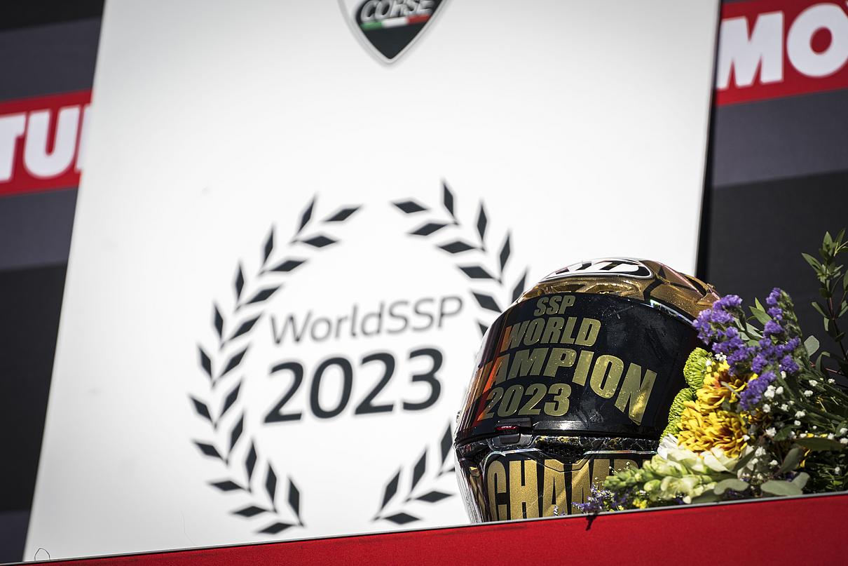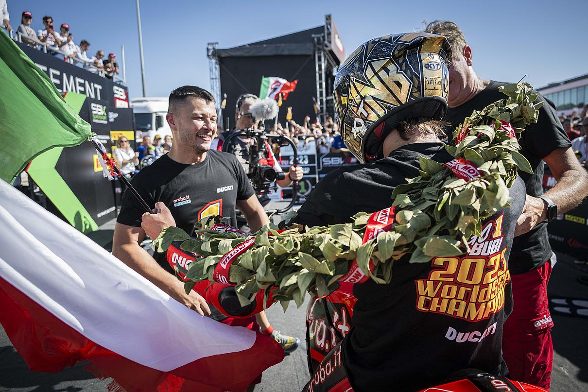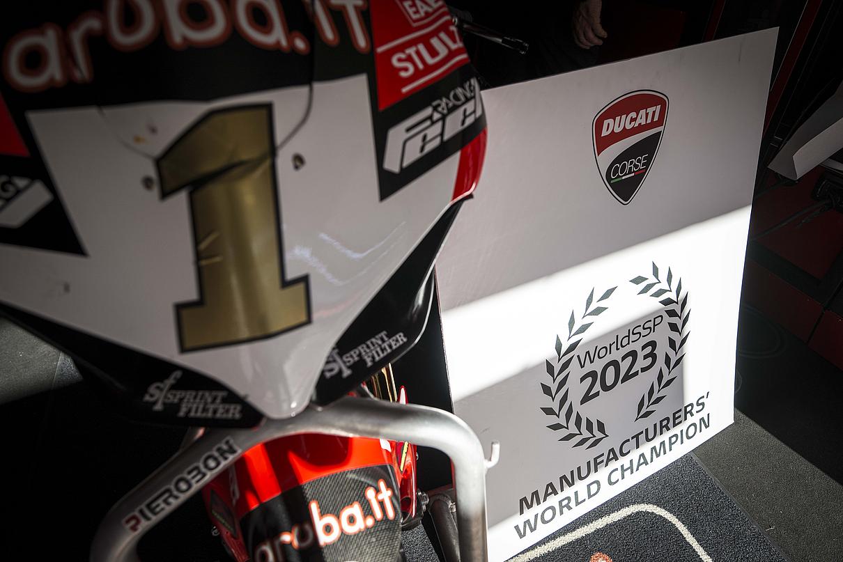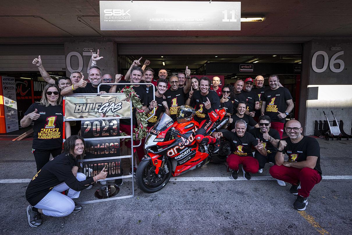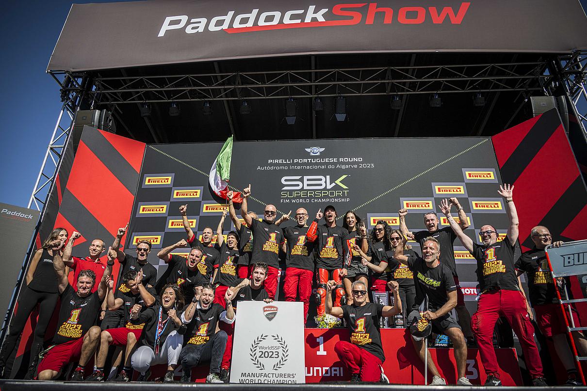 Das Aruba.it Racing Team WSSP und Ducati Bologna können mit diesem Ergebnis auch den Gewinn des Hersteller-Weltmeistertitels in der Supersport-Klasse feiern. Dies ist ein äußerst bedeutendes Ergebnis für den Motorradhersteller aus Bologna und unterstreicht die herausragende Arbeit, die gemeinsam mit den Satellitenteams geleistet wurde, um die Panigale V2 zum Meisterschaftsgewinn zu führen.