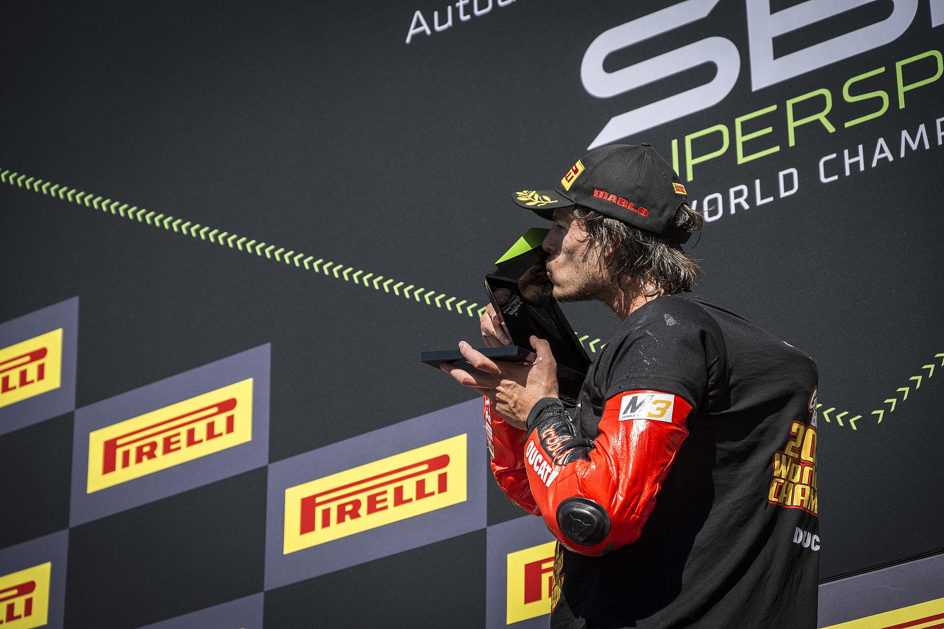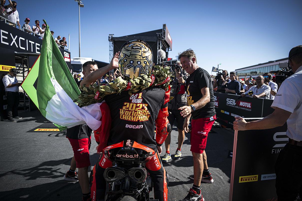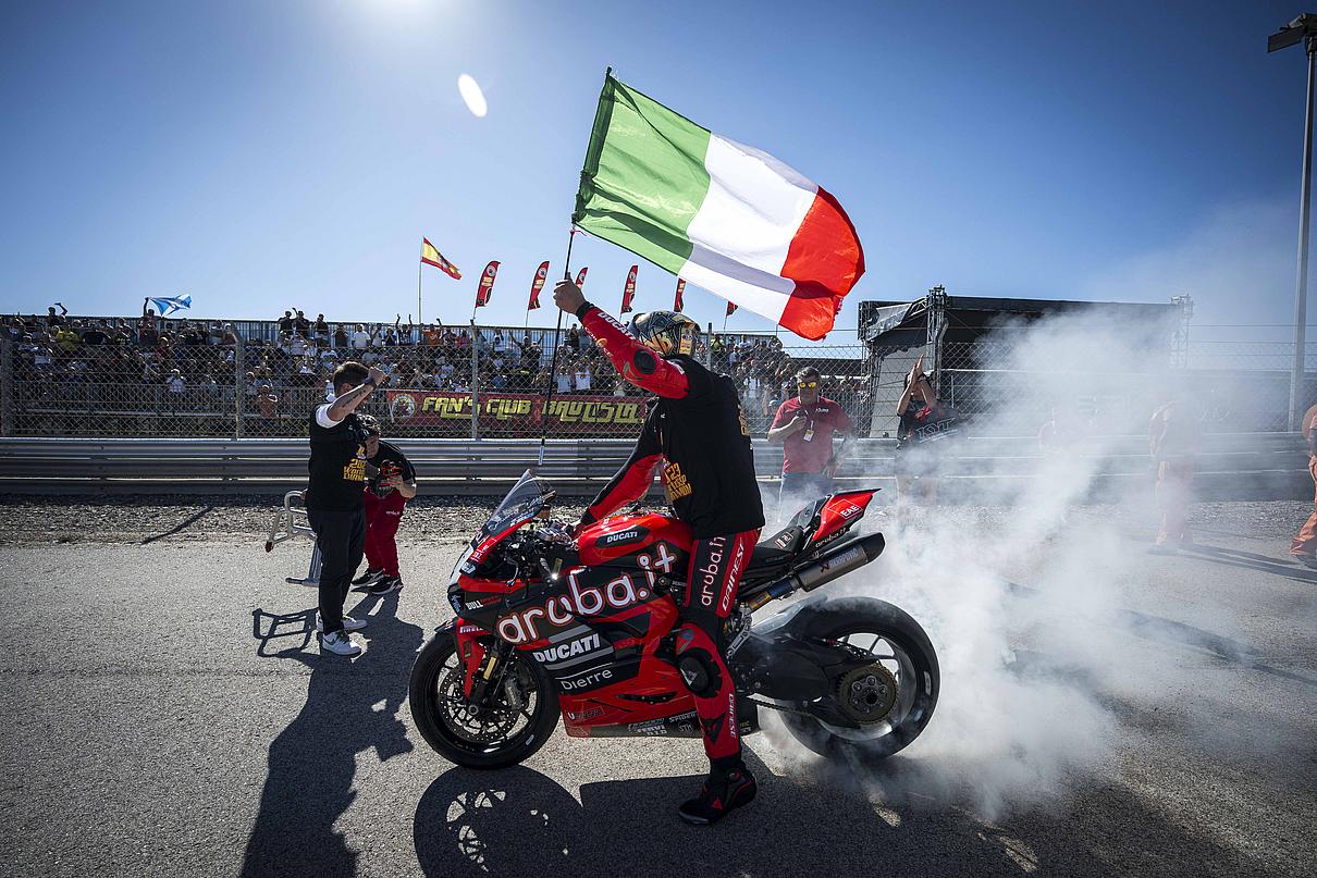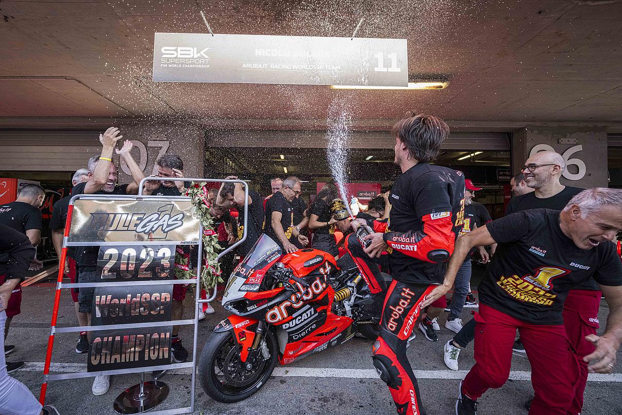 Das Aruba.it Racing Team WSSP und Ducati Bologna können mit diesem Ergebnis auch den Gewinn des Hersteller-Weltmeistertitels in der Supersport-Klasse feiern. Dies ist ein äußerst bedeutendes Ergebnis für den Motorradhersteller aus Bologna und unterstreicht die herausragende Arbeit, die gemeinsam mit den Satellitenteams geleistet wurde, um die Panigale V2 zum Meisterschaftsgewinn zu führen.