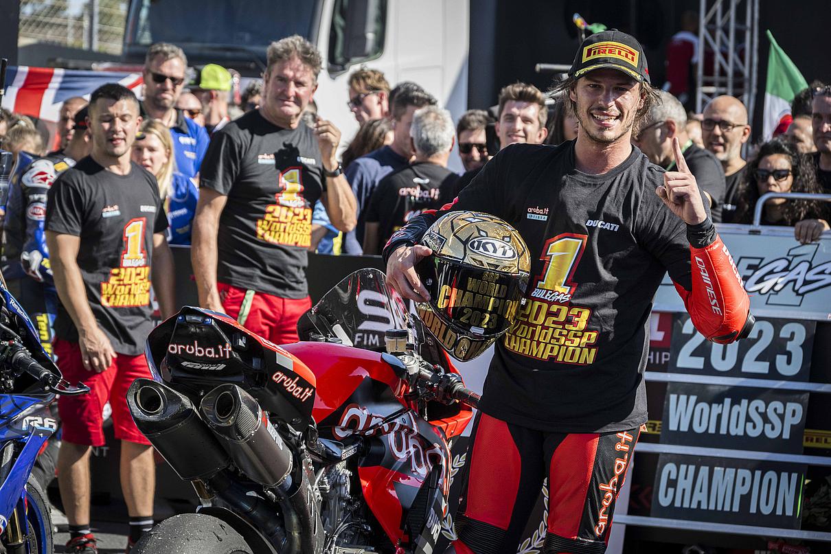 Im Jahr 2023 beherrschte der Italiener die Rennserie und wird in der kommenden Saison als offizieller Fahrer und Teamkollege von Alvaro Bautista im Superbike-Weltmeisterschaftsteam Aruba.it Racing - Ducati mit der Panigale V4 R antreten. Bulega, der die Tabelle seit Saisonbeginn anführte, blieb während der gesamten Meisterschaft fehlerfrei und ist bereits drei Rennen vor Saisonende uneinholbar.