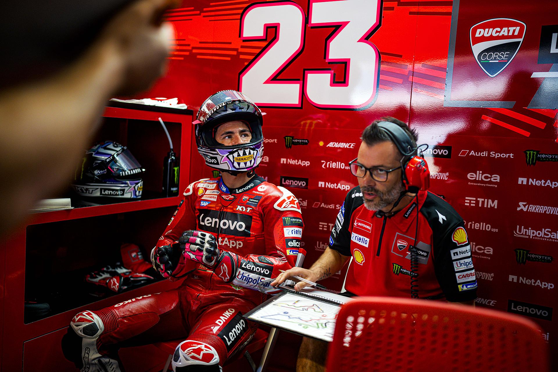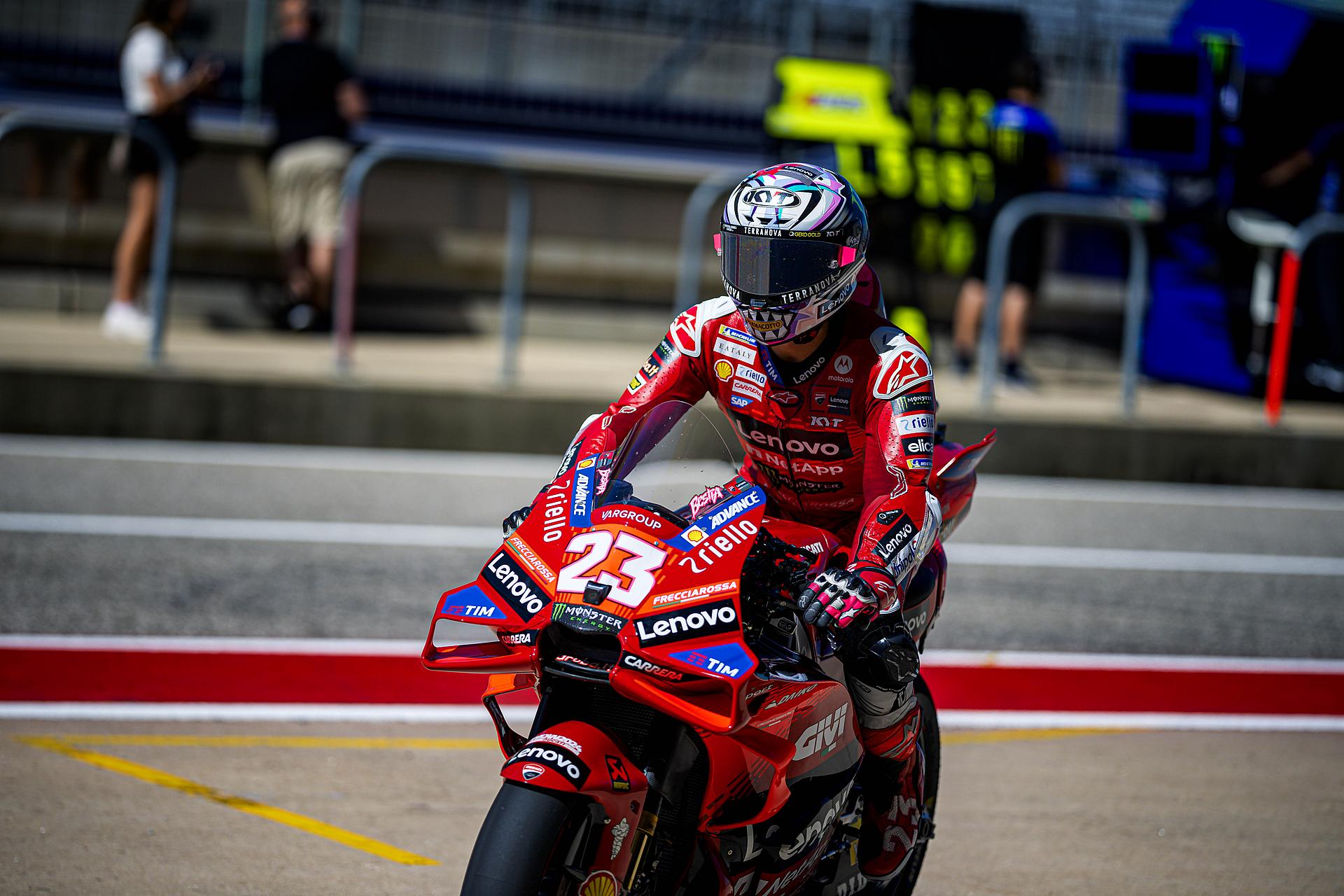 Bagnaia hatte keinen perfekten Start und landete in der Mitte der Fahrergruppe in Kurve eins und fiel nach ein paar Kurven auf den zehnten Platz zurück. Der amtierende Weltmeister hatte vor allem im ersten Teil des Rennens Schwierigkeiten, auf Touren zu kommen, aber in den letzten Runden konnte er zwei Plätze gutmachen und wurde Achter im Sprintrennen.