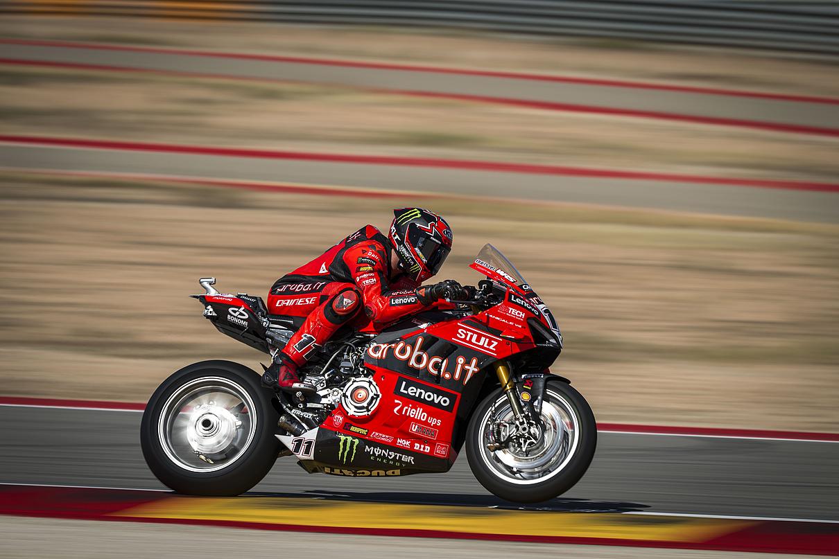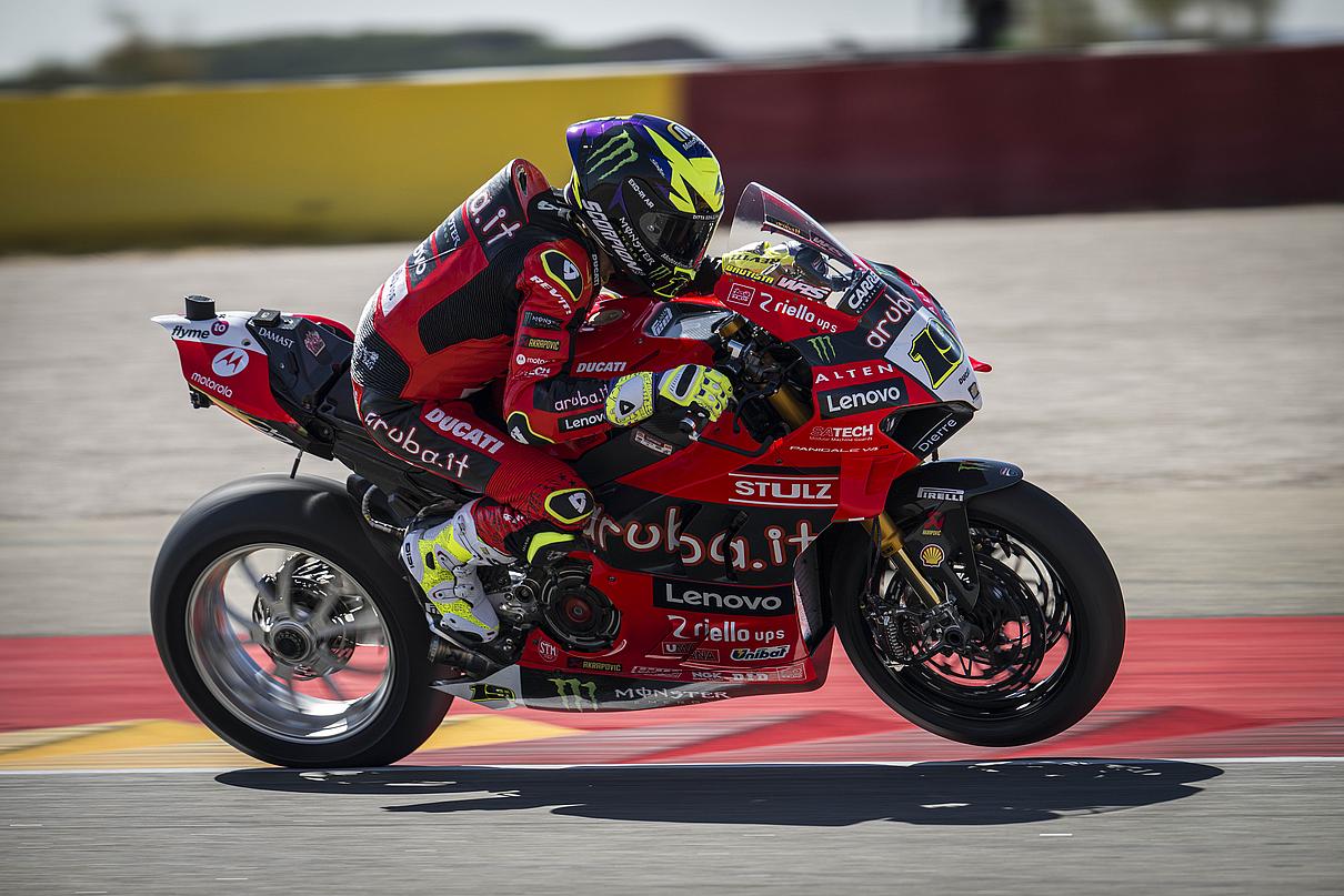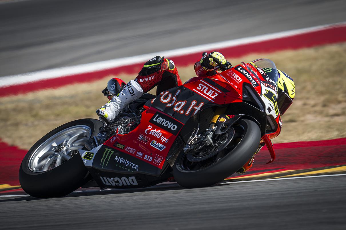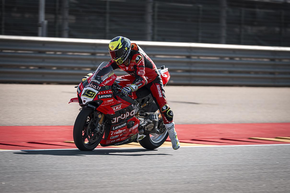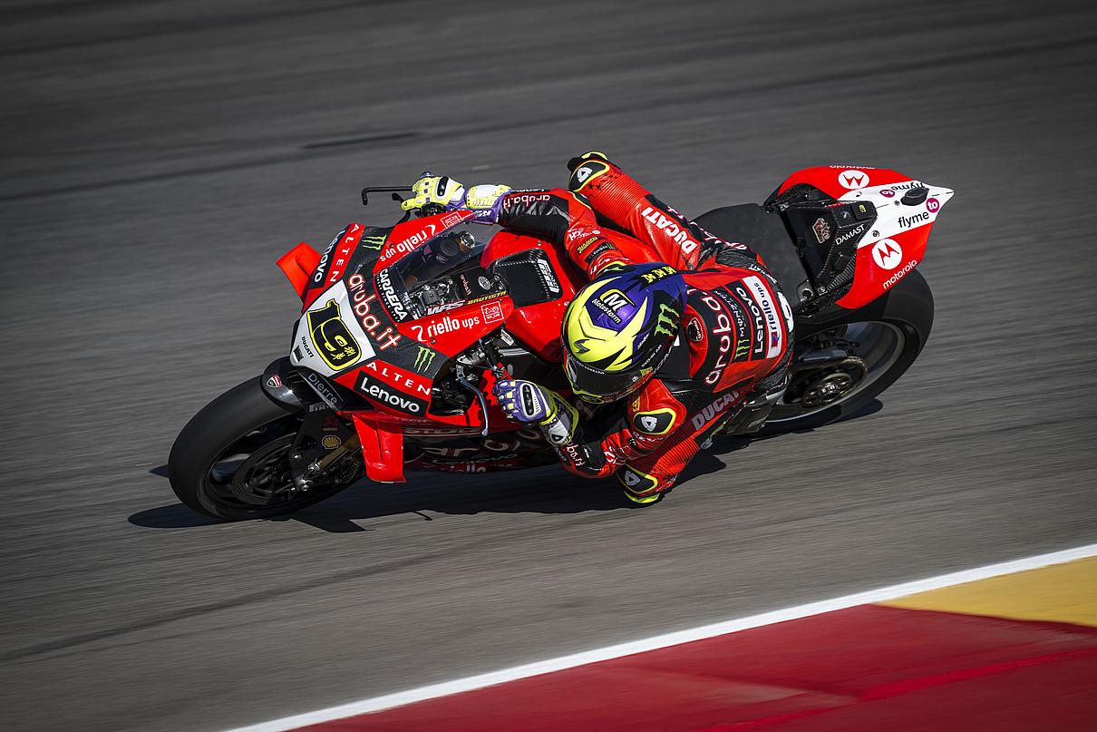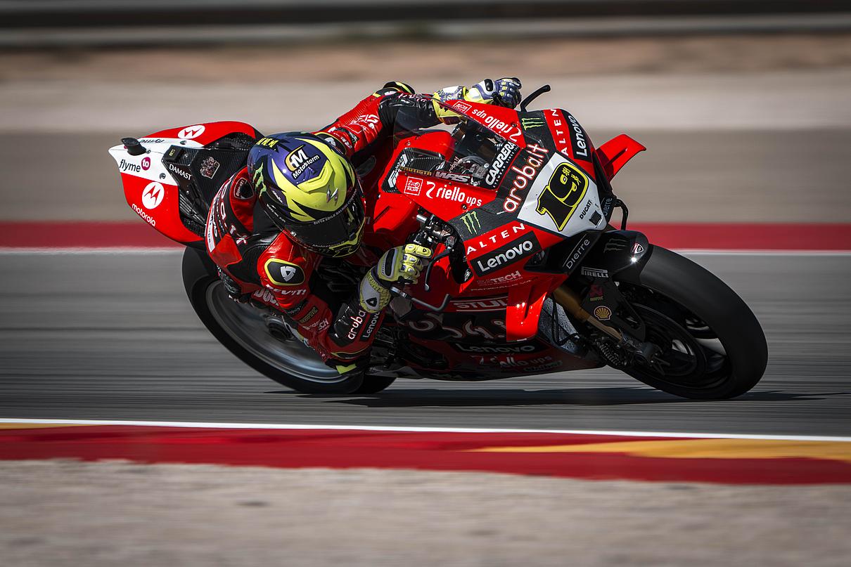 Die zehnte Runde der WorldSBK-Saison 2025 im Motorland Aragon begann am Freitag für das Team Aruba.it Racing - Ducati überzeugend. Nachdem Nicolò Bulega am Morgen, der von eher tiefen Temperaturen geprägt war, den zweiten Platz im FP1 belegt hatte, gelang es ihm am Nachmittag, sich mit seiner Ducati Panigale V4R noch weiter zu verbessern. Er beendete das FP2 mit einer Zeit von 1:48,736 und belegte damit den zweiten Platz in der Gesamtwertung.