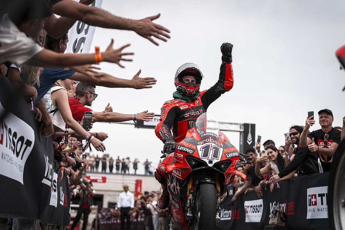In Rennen 1 am Samstag trennten nur dreißig Tausendstelsekunden Nicolò Bulega vom Sieg. Bulega startete von der Pole-Position, die er sich zuvor in der Superpole mit einem neuen Streckenrekord gesichert hatte, und lieferte sich in den ersten Runden ein intensives Duell mit Razgatlioglu (BMW), wobei beide Fahrer ständig die Führung wechselten. In den letzten vier Runden startete er eine aggressive Attacke, fuhr zweimal die schnellste Runde, musste sich aber letztendlich mit dem zweiten Platz begnügen.