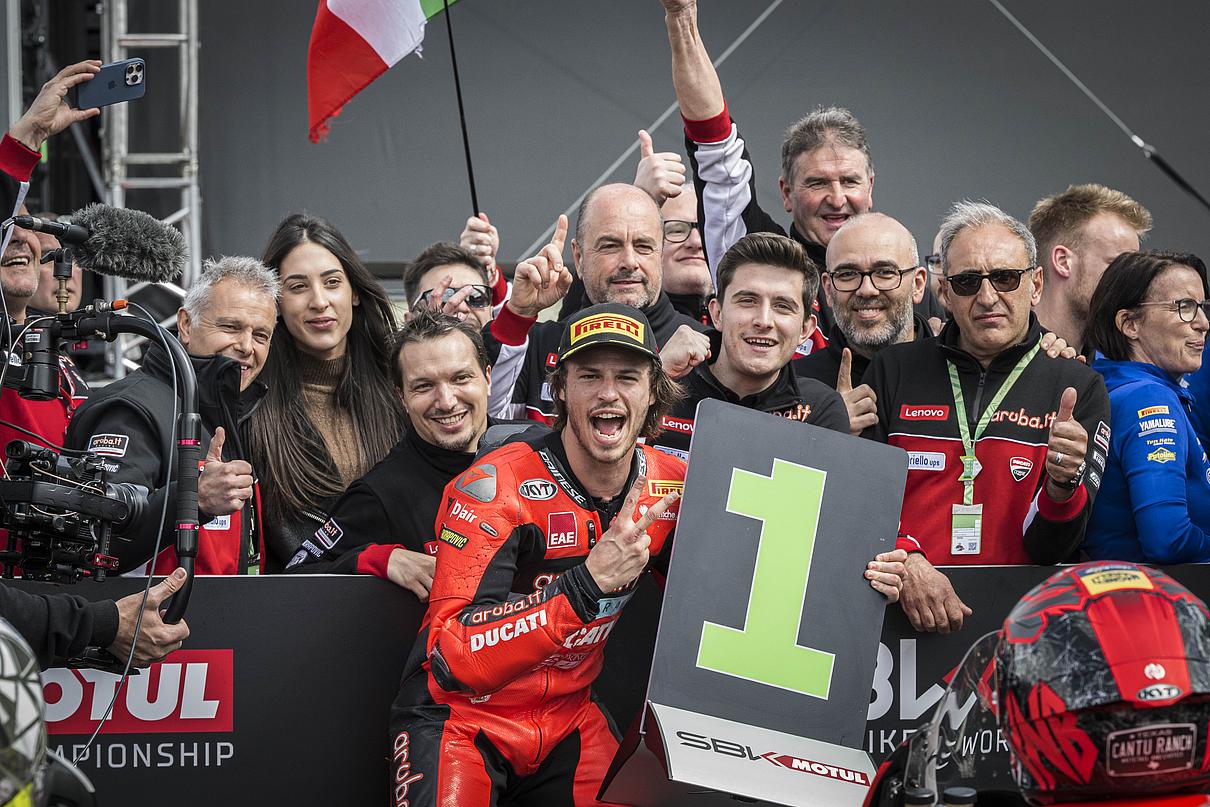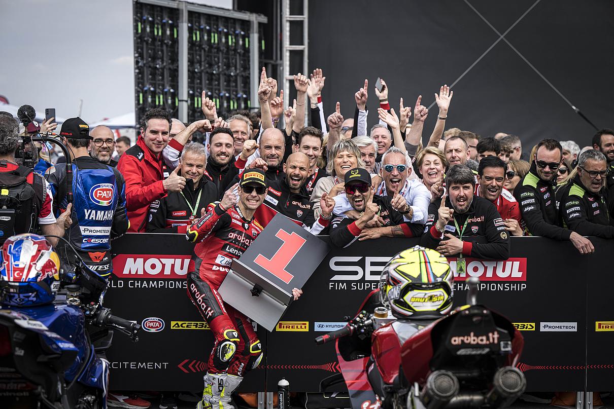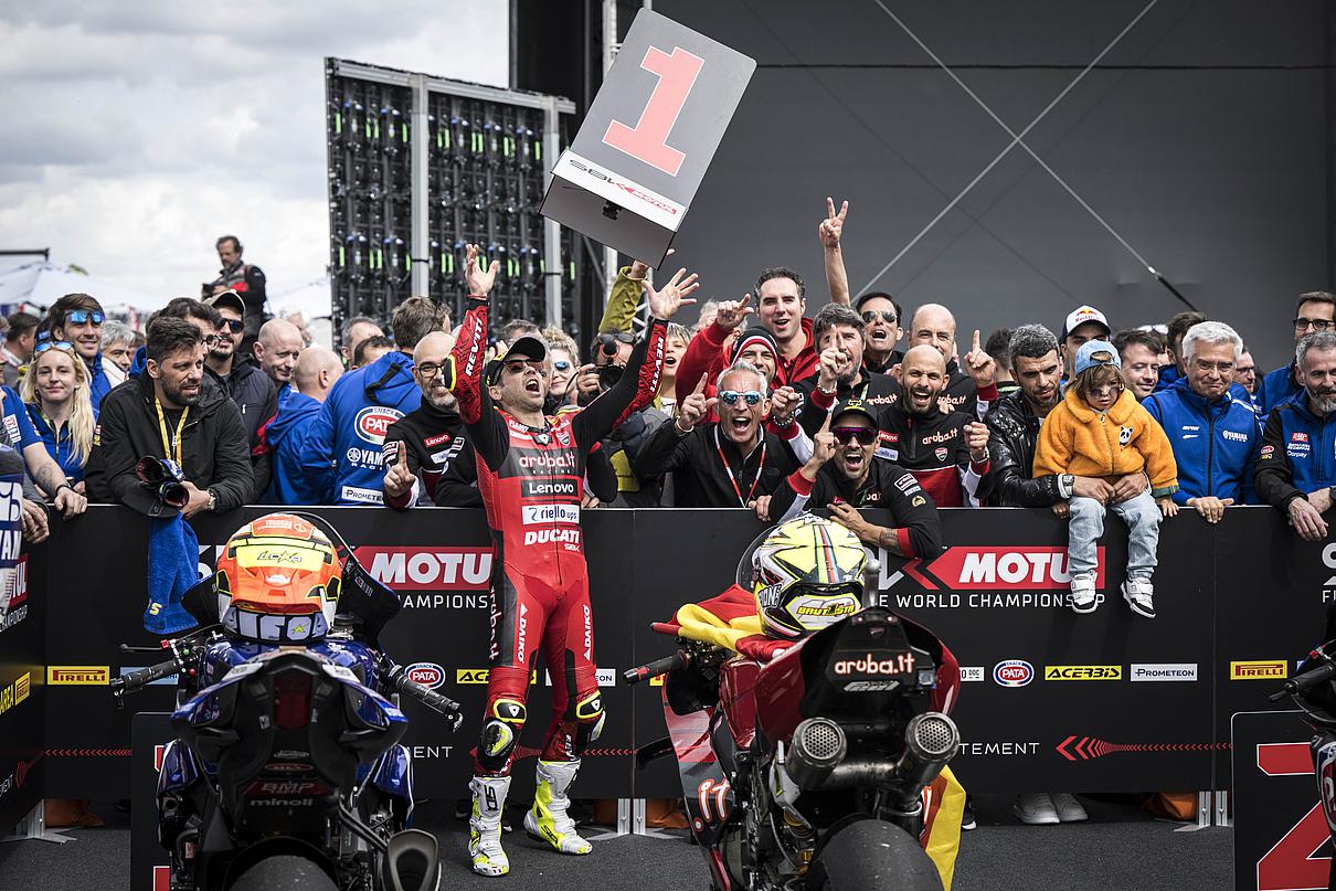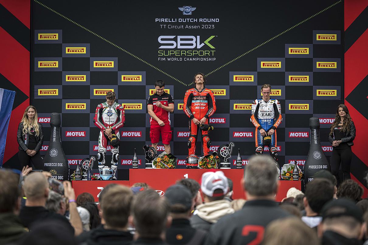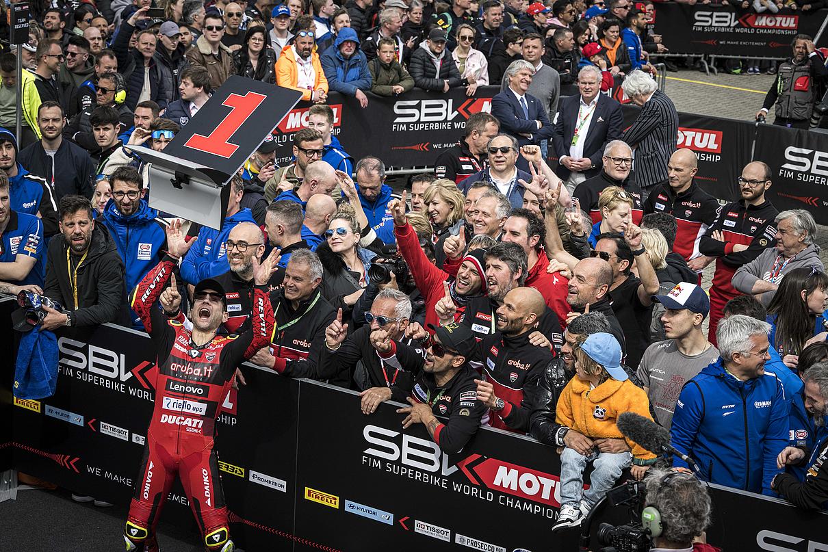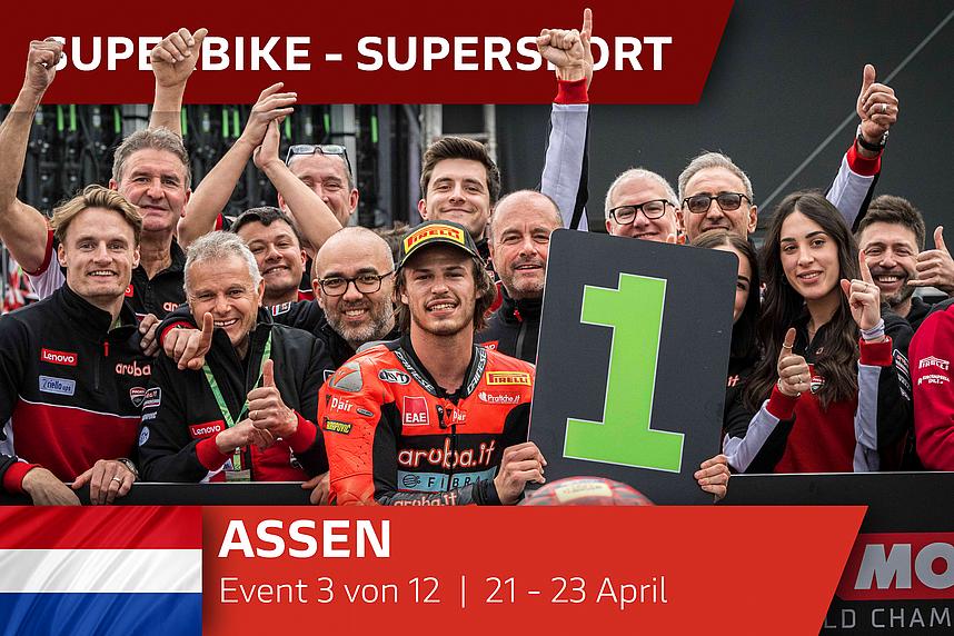 Am Sonntag gewannen dann Alvaro Bautista und Nicolò Bulega alle Rennen, die am TT Circuit in Assen (Niederlande) stattfanden, sowohl in der WorldSBK als auch in der WorldSSP. Sie eroberten an diesem Wochenende die Pole Positions, erzielten alle schnellsten Rundenzeiten und stellten zudem neue Streckenrekorde auf. Ein außergewöhnlicher Erfolg an demselben Tag wie der historische 400. Ducati-Sieg in der Superbike-Weltmeisterschaft, den Bautista im Rennen 2 errungen hat.