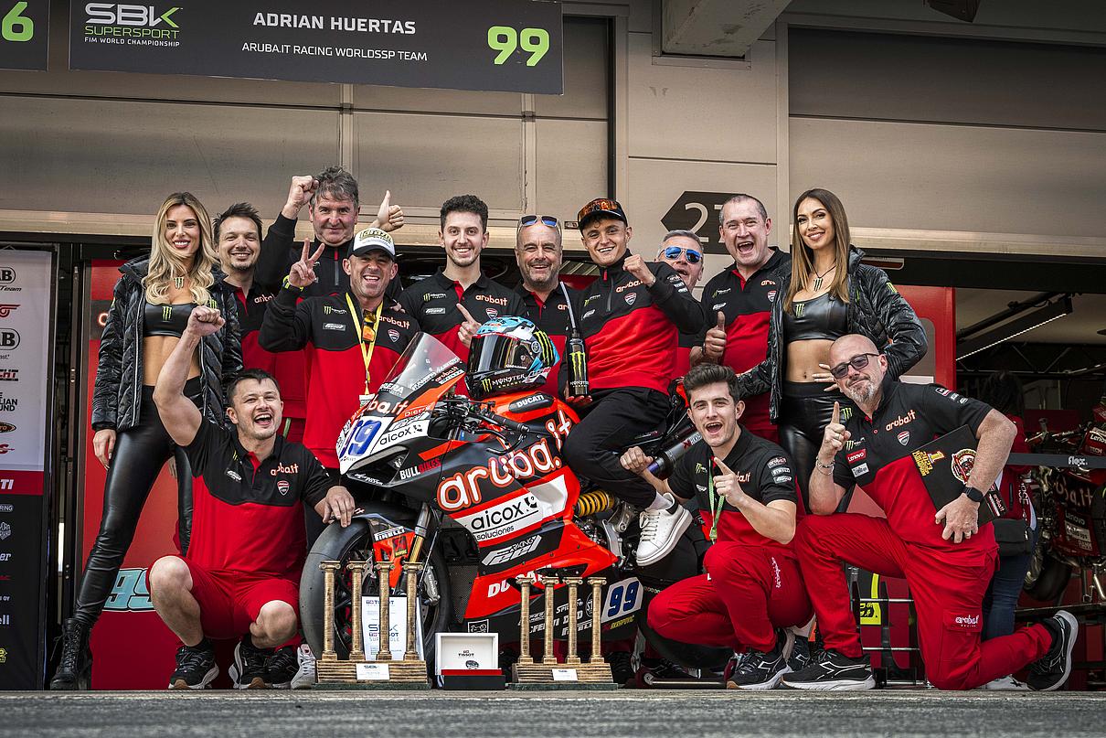 Adrian Huertas sicherte sich seine zweite Pole Position der Saison und gewann souverän das Rennen 1 der WorldSSP mit der Ducati Panigale V2 des Aruba.it Racing WSSP Teams.