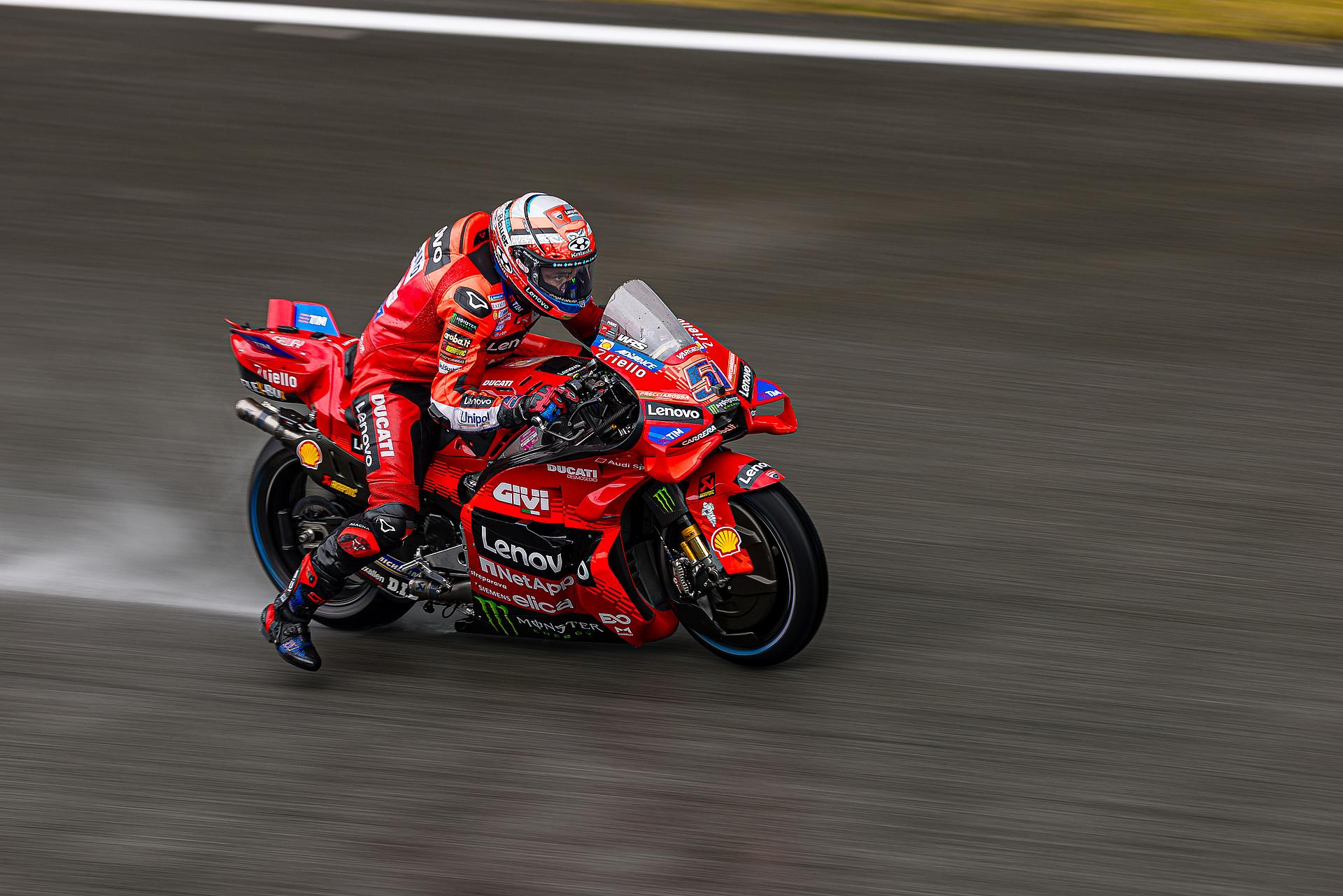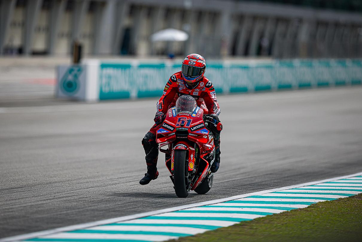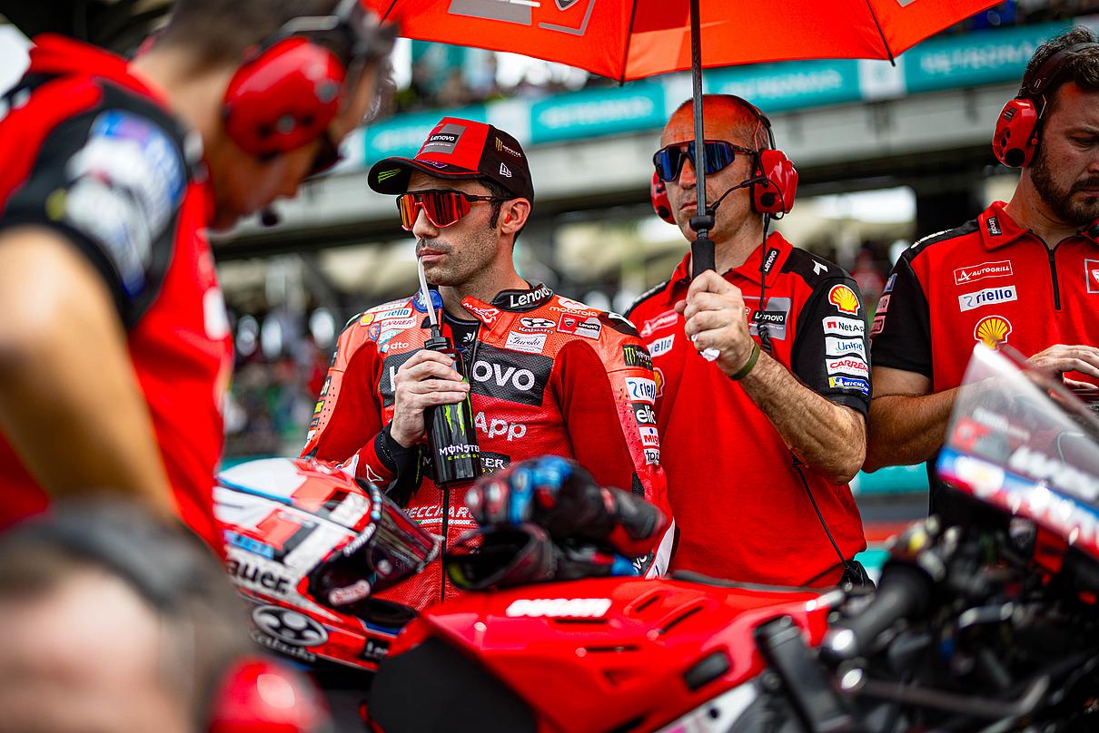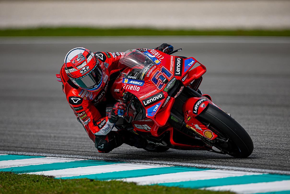 Am Freitag blieb Francesco Bagnaia, am Vormittag Zweiter im nassen FP-Training, während des größten Teils des zweiten Trainings unter den ersten Drei. Als es jedoch in den letzten Minuten wieder leicht zu regnen begann, konnte Pecco seine Rundenzeit nicht mehr verbessern und beendete den Tag als Zwölfter, nur 0,089 Sekunden hinter den Top Ten. Michele Pirro setzte seine Entwicklungsarbeit an der Desmosedici GP fort und beendete den ersten Tag auf Platz 22.
