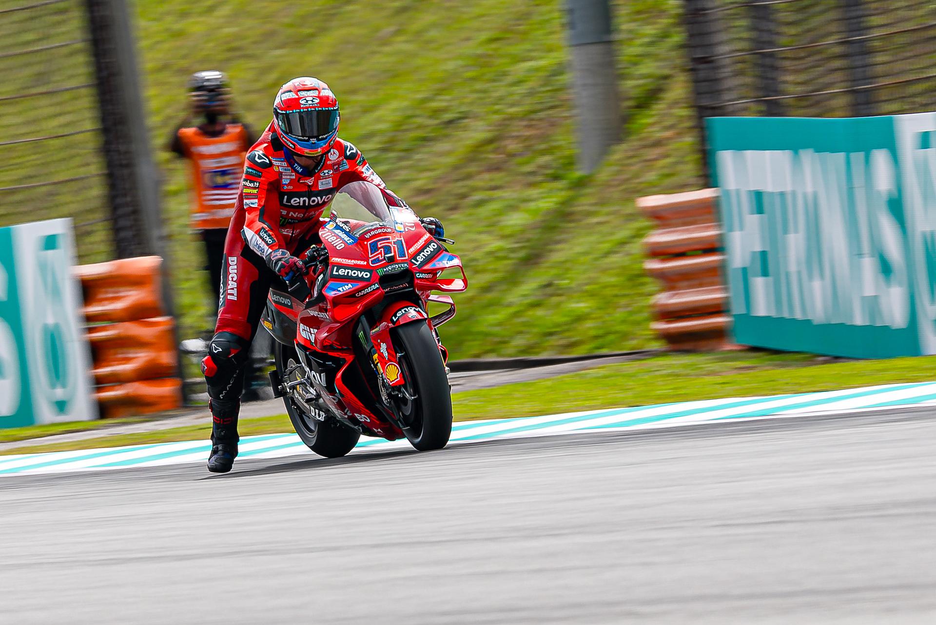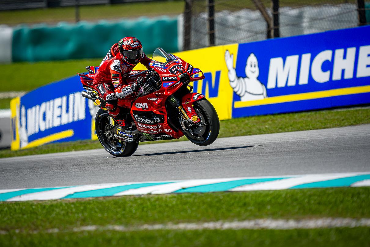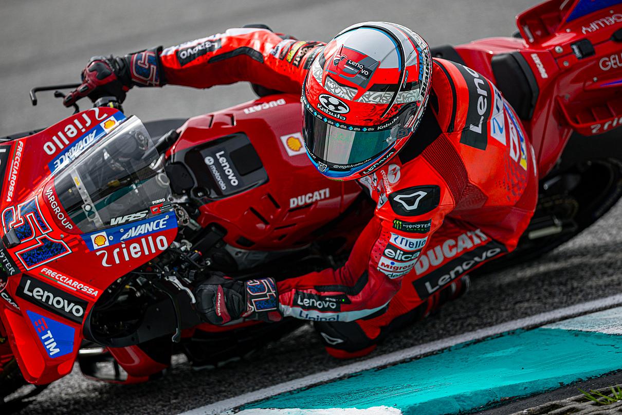 Am Freitag blieb Francesco Bagnaia, am Vormittag Zweiter im nassen FP-Training, während des größten Teils des zweiten Trainings unter den ersten Drei. Als es jedoch in den letzten Minuten wieder leicht zu regnen begann, konnte Pecco seine Rundenzeit nicht mehr verbessern und beendete den Tag als Zwölfter, nur 0,089 Sekunden hinter den Top Ten. Michele Pirro setzte seine Entwicklungsarbeit an der Desmosedici GP fort und beendete den ersten Tag auf Platz 22.