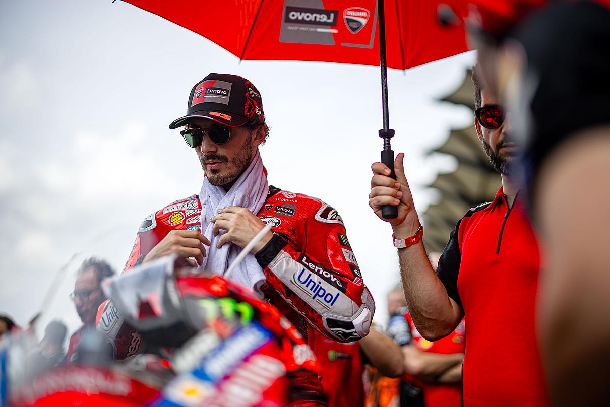 Beim Grand Prix am Sonntag startete Bagnaia von der Pole-Position perfekt ins Rennen, verlor in der zweiten Runde die Führung, hielt aber den Abstand zu Alex Márquez mehr als die Hälfte des Rennens lang konstant. Nachdem er den zweiten Platz gegen die Angriffe von Pedro Acosta gut verteidigt hatte, fiel er auf den dritten Platz zurück und begann, an Boden zu verlieren. Drei Runden vor Schluss kehrte Pecco an die Box zurück und gab aufgrund eines platten Hinterreifens auf. Michele Pirro beendete das Wochenende mit einem siebzehnten Platz.