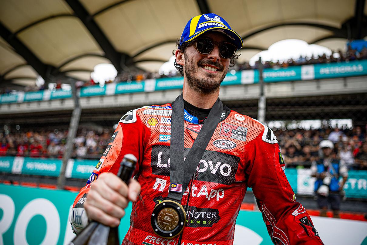 Pecco Bagnaia musste am Samstag durch die erste Qualifying Session und holte sich anschließend in einem spannenden Qualifying 2 die Pole-Position. Im darauffolgenden Sprintrennen hatte einen hervorragenden Start und setzte sich Runde für Runde bis zur Zielflagge von seinen Gegnern ab. Es war Peccos zweiter Saisonsieg in einem Samstagsrennen.