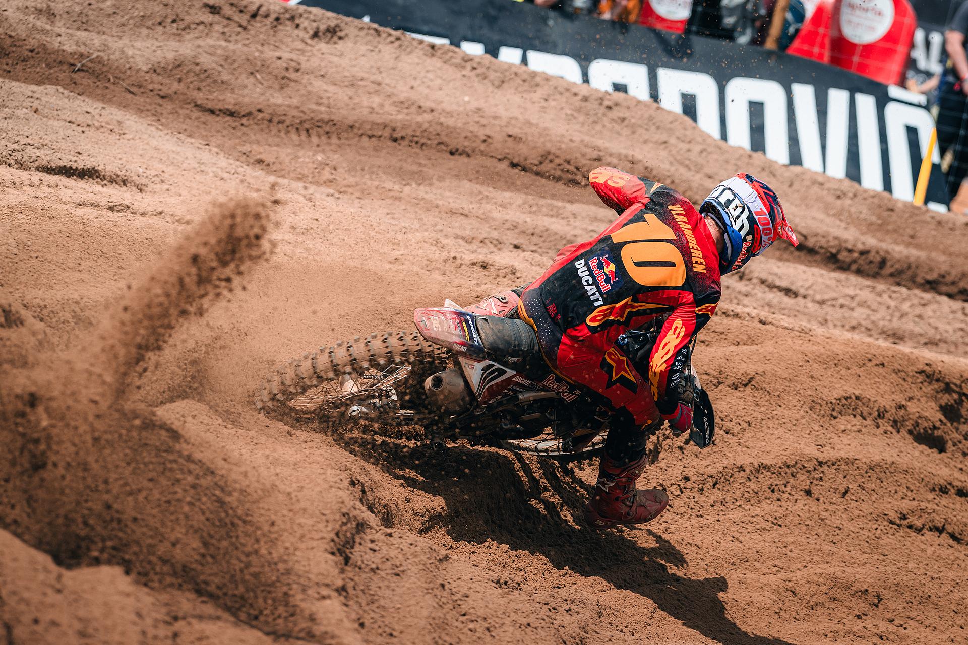 Entschlossen, das Wochenende mit einem Erfolg zu beenden, startete Vlaanderen stark in den zweiten Lauf des Tages und überquerte die Ziellinie in der ersten Runde als Siebter; nach zwei Runden lag der Fahrer des Red Bull Ducati Factory MXGP Teams auf dem achten Platz. Er fand ein gutes Gefühl für die anspruchsvolle, sandige Strecke, machte Positionen gut und arbeitete sich vor auf den fünften Platz, was ihm den neunten Platz in der Meisterschaftswertung einbrachte. Seewers zweiter Lauf erwies sich als schwieriger: Er startete als 25., schaffte es aber, auf dem 19. Platz ins Ziel zu kommen, und belegte damit den 20. Platz in der Gesamtwertung des Grand Prix.