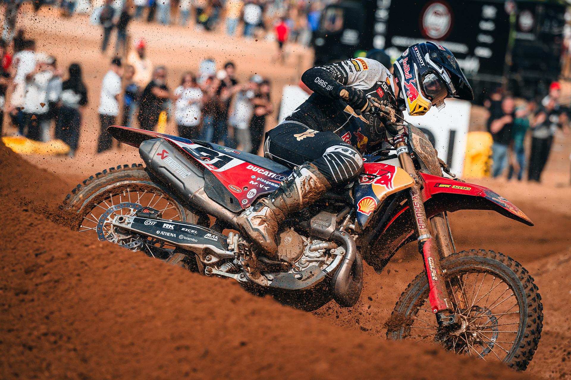 Calvin Vlaanderen, der am Ende des freien Trainings, das die Fahrer des Red Bull Ducati MXGP Factory Teams nutzten, um sich mit der neuen Strecke vertraut zu machen, auf Platz 15 lag, belegte im anschließenden Zeittraining den achten Platz, während sein Teamkollege Jeremy Seewer weiter hinten auf Platz 15 landete.