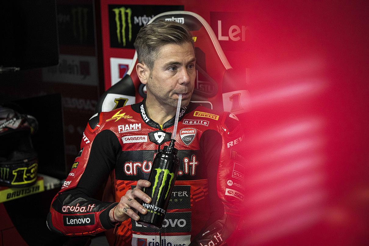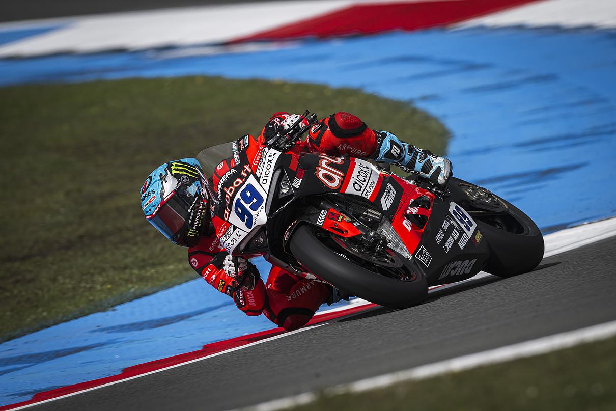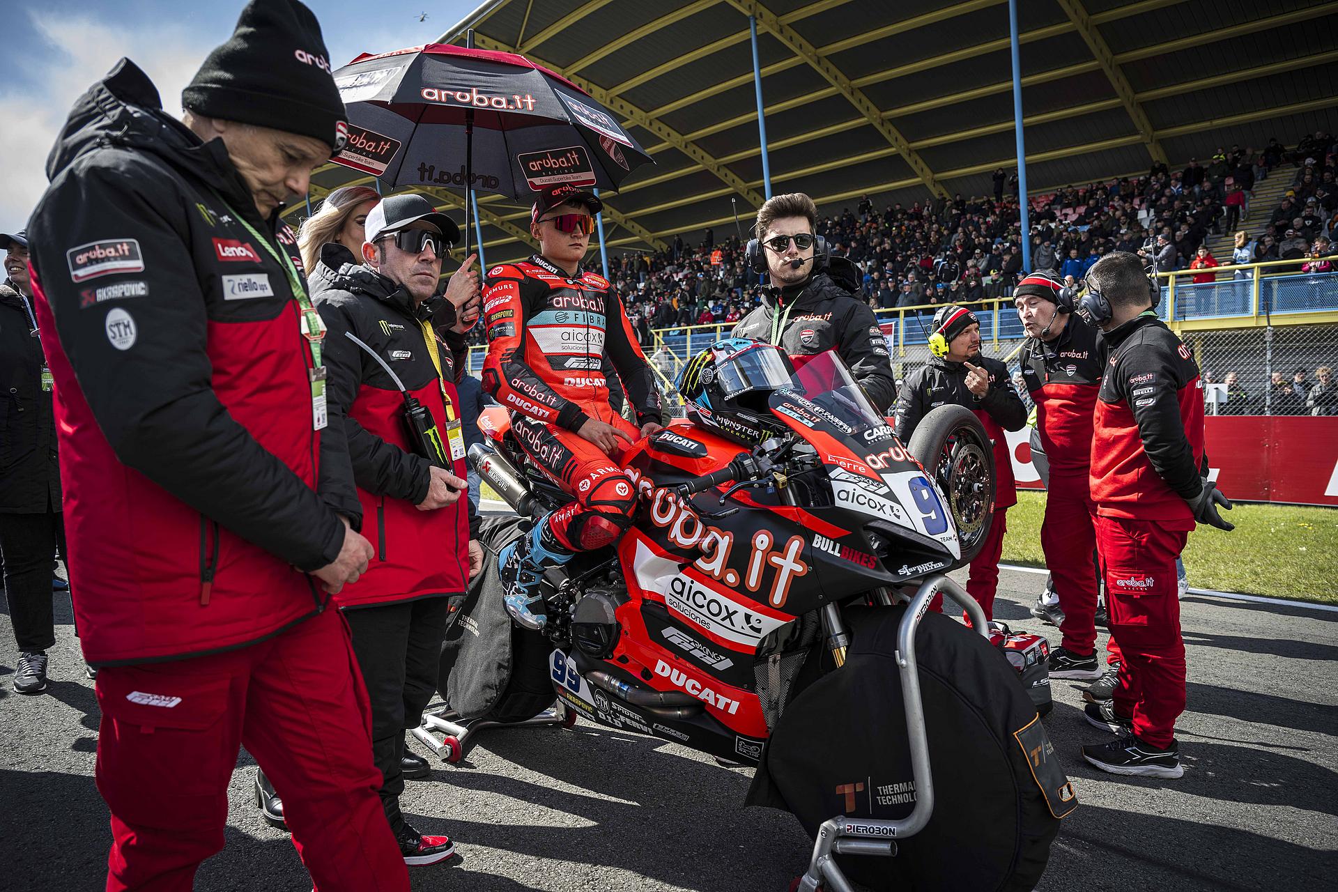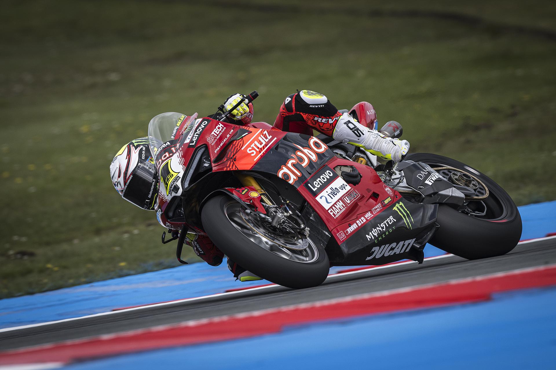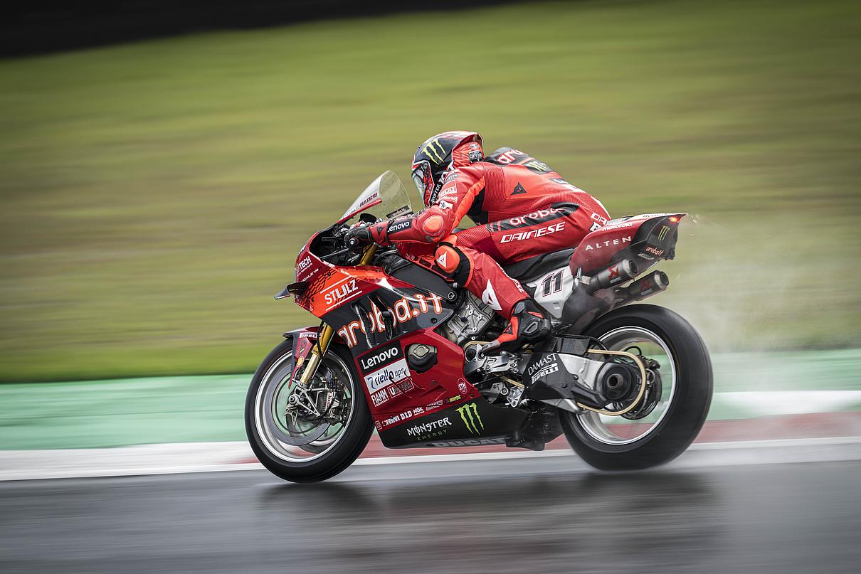 Der Samstag brachte mit unvorhersehbarem Wetter weitere Herausforderungen. Bautista kämpfte im Rennen 1 um den Sieg, wurde jedoch durch eine rote Flagge gestoppt. Spinelli (Barni – Ducati Ersatzfahrer für Petrucci) war der einzige auf Regenreifen und rettet seinen Vorsprung bis zum Abbruch glücklich zum Sieg. Bulega konnte nicht mit der Spitzengruppe mithalten und belegte den 11. Platz.