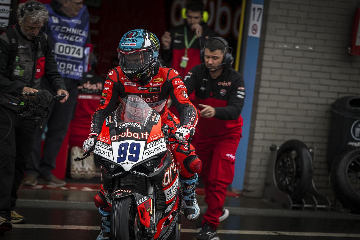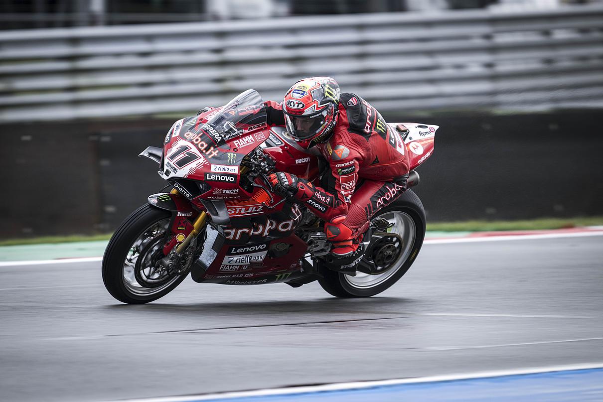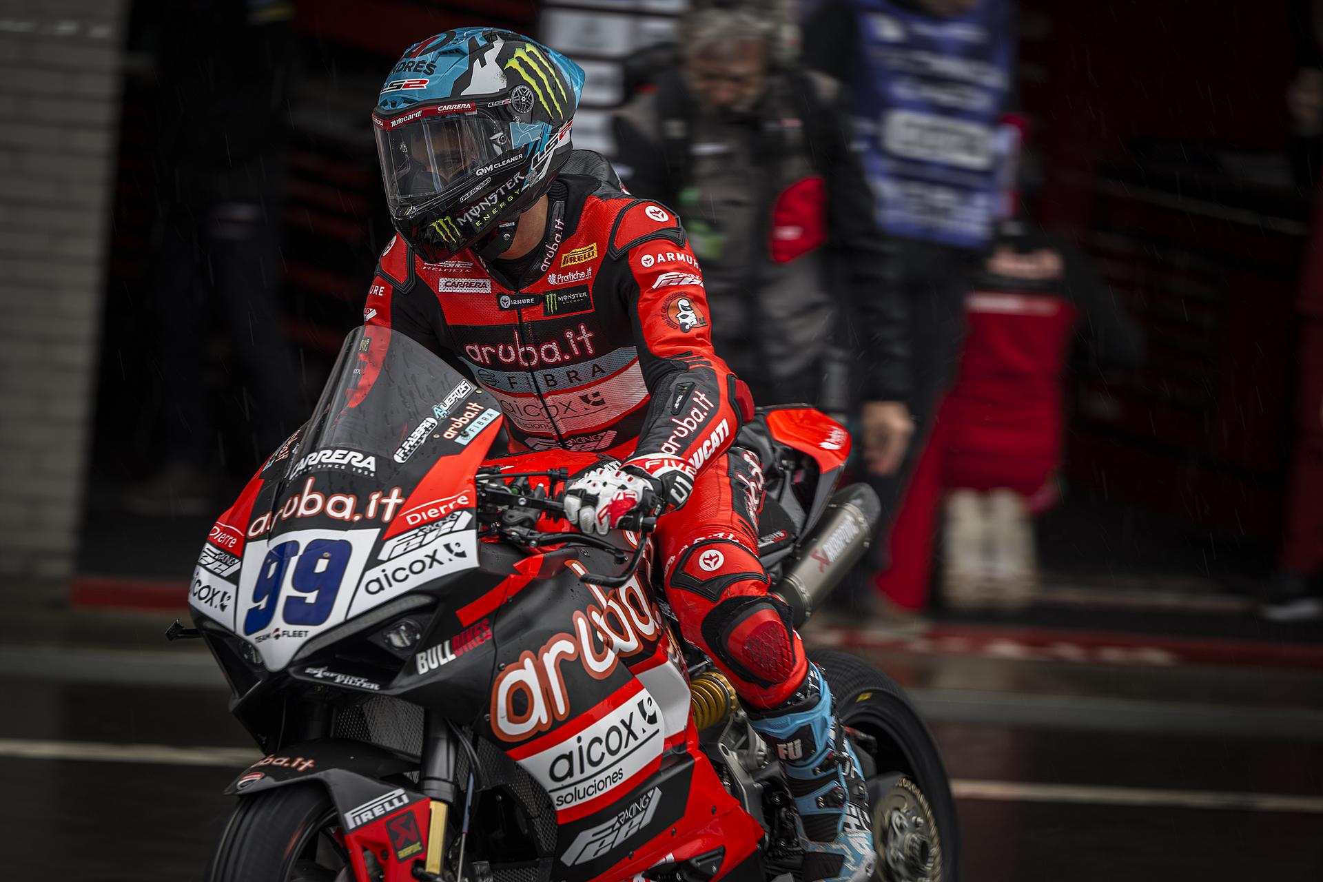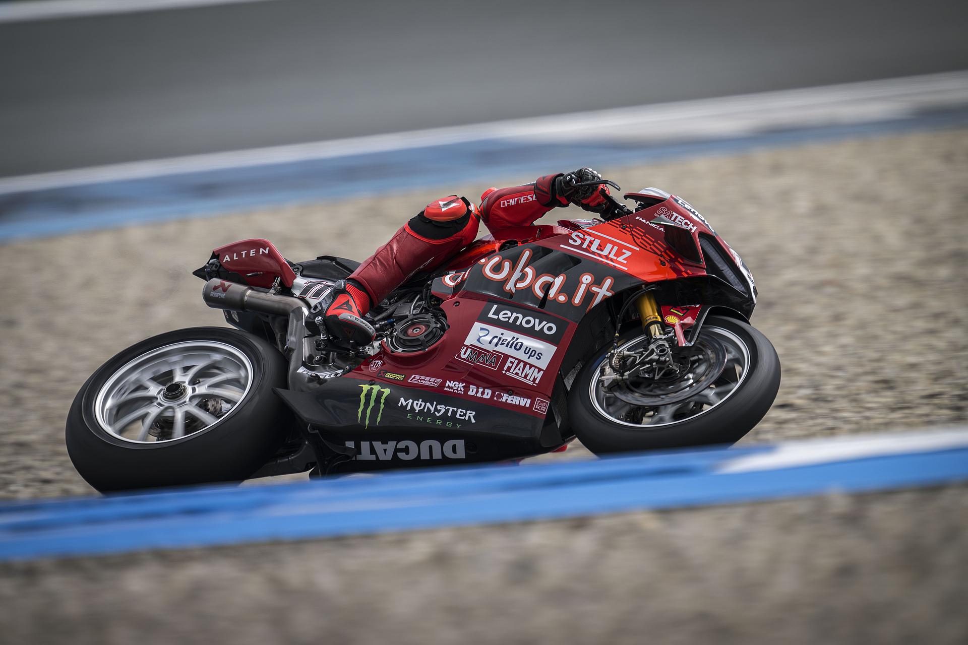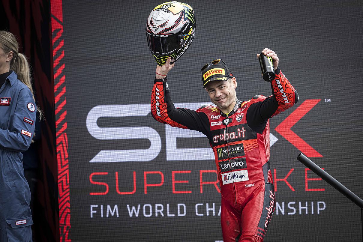 Der Samstag brachte mit unvorhersehbarem Wetter weitere Herausforderungen. Bautista kämpfte im Rennen 1 um den Sieg, wurde jedoch durch eine rote Flagge gestoppt. Spinelli (Barni – Ducati Ersatzfahrer für Petrucci) war der einzige auf Regenreifen und rettet seinen Vorsprung bis zum Abbruch glücklich zum Sieg. Bulega konnte nicht mit der Spitzengruppe mithalten und belegte den 11. Platz.