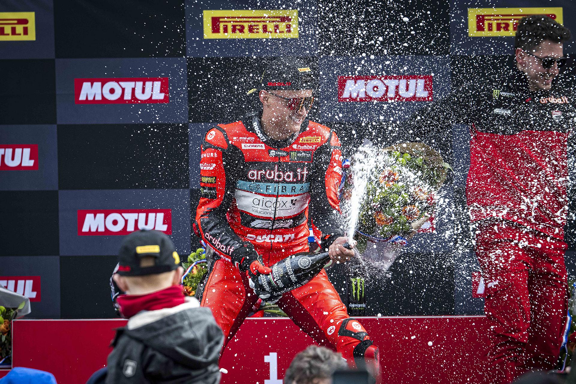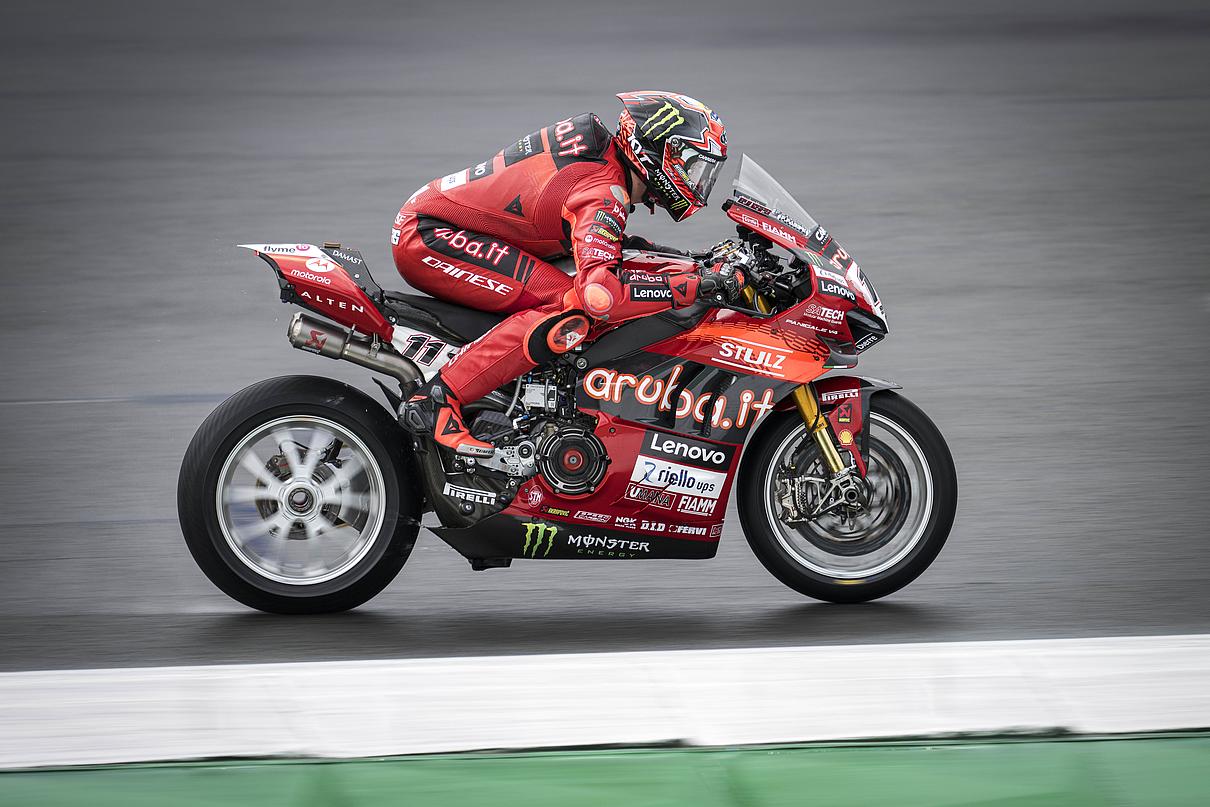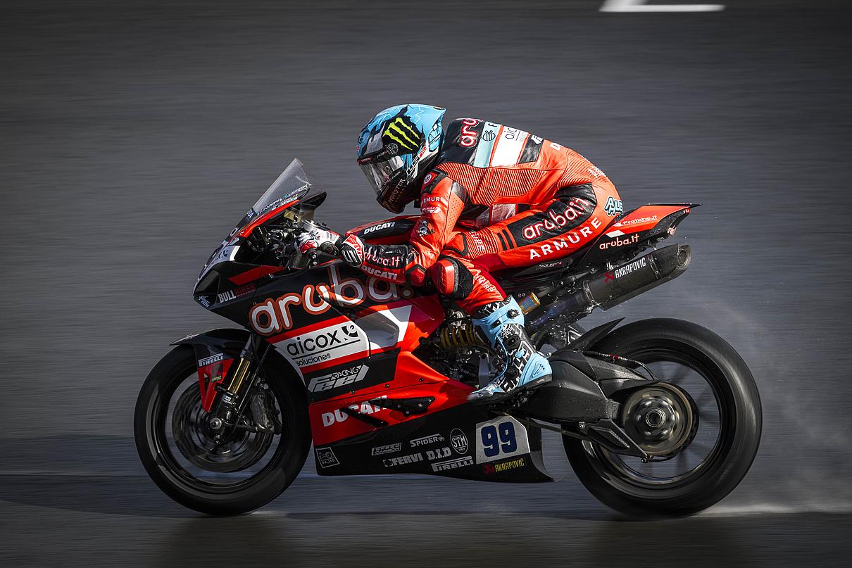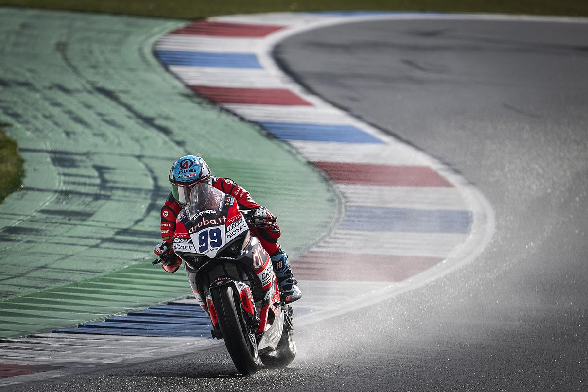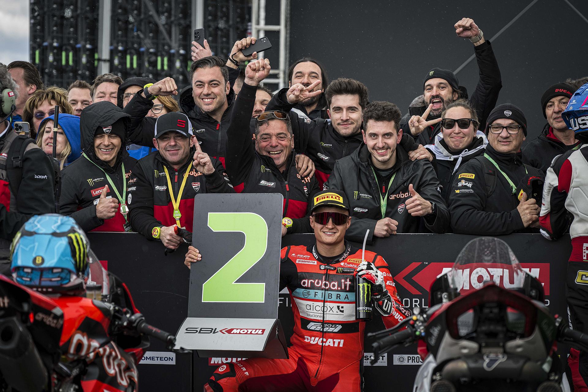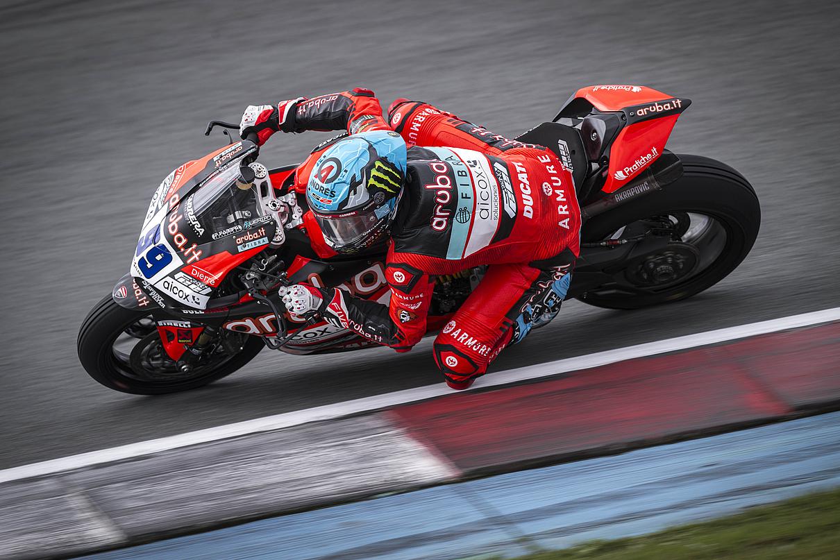 Der Samstag brachte mit unvorhersehbarem Wetter weitere Herausforderungen. Bautista kämpfte im Rennen 1 um den Sieg, wurde jedoch durch eine rote Flagge gestoppt. Spinelli (Barni – Ducati Ersatzfahrer für Petrucci) war der einzige auf Regenreifen und rettet seinen Vorsprung bis zum Abbruch glücklich zum Sieg. Bulega konnte nicht mit der Spitzengruppe mithalten und belegte den 11. Platz.