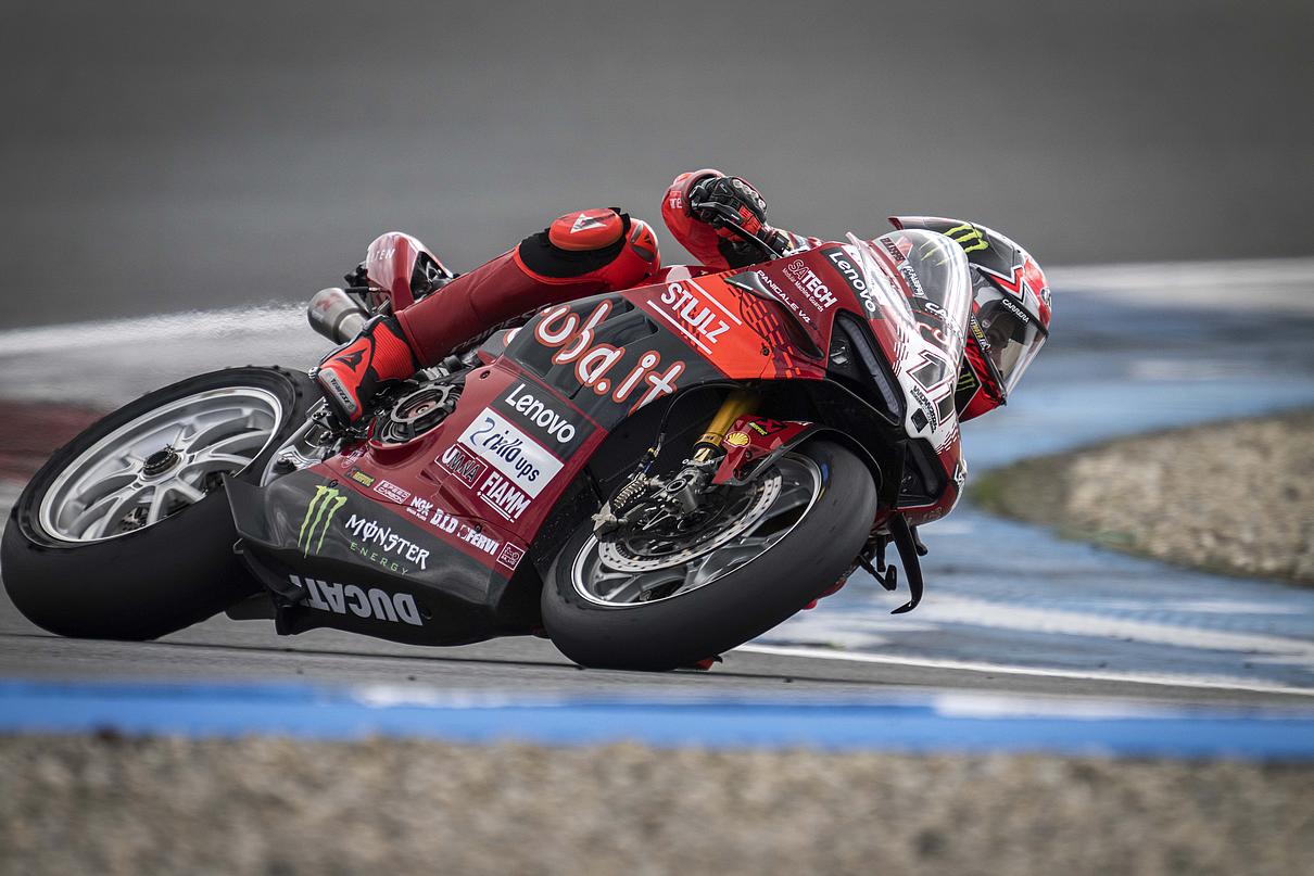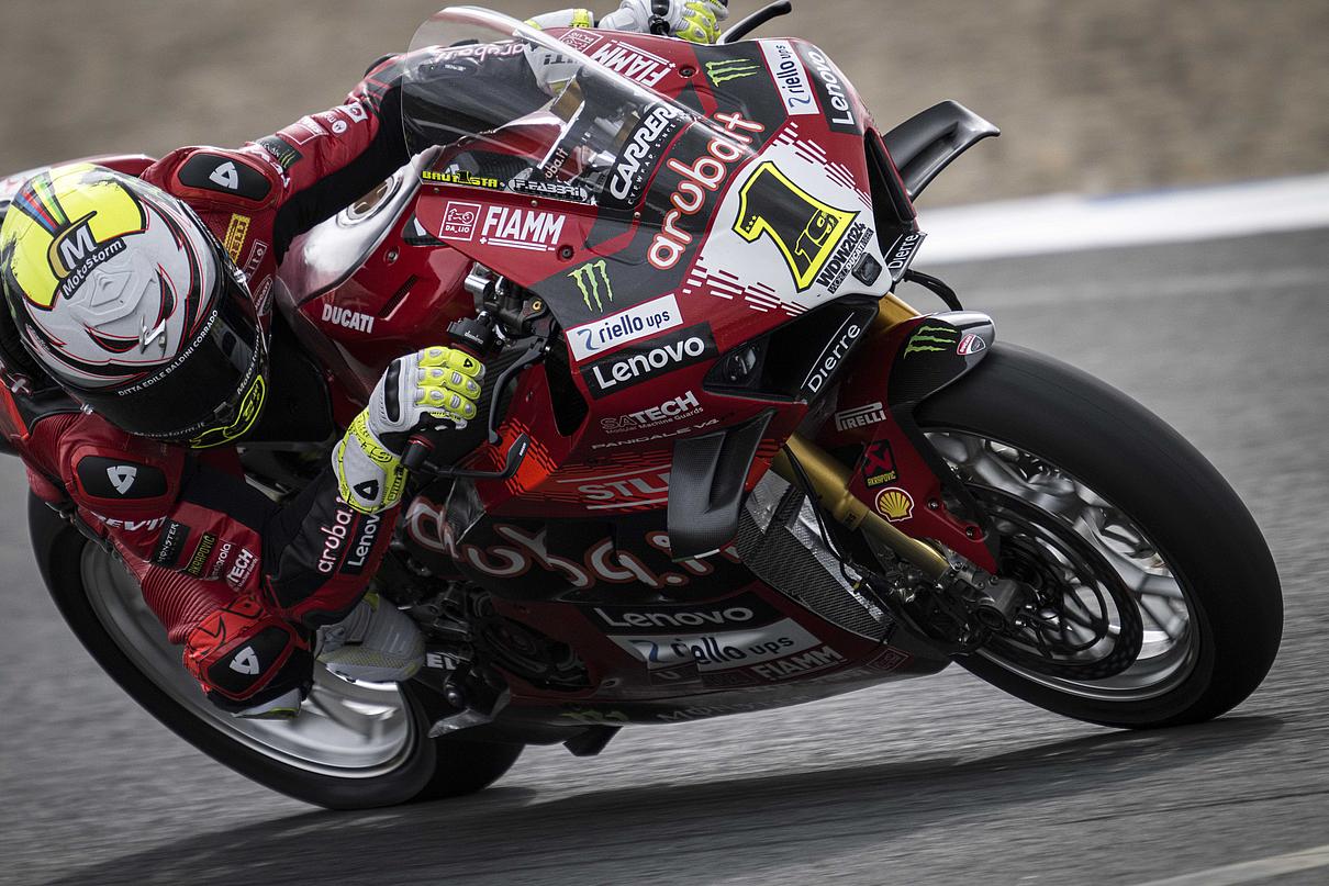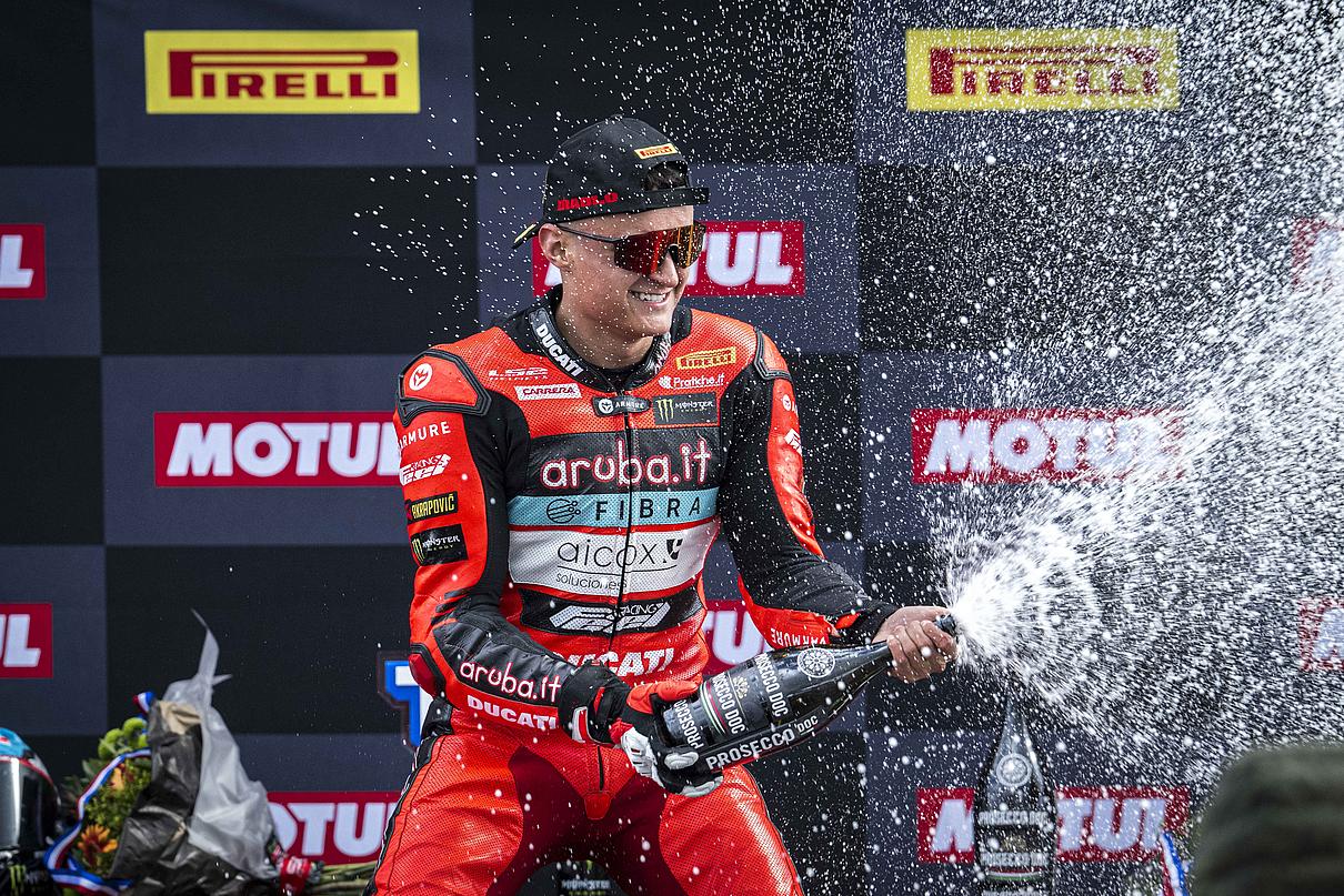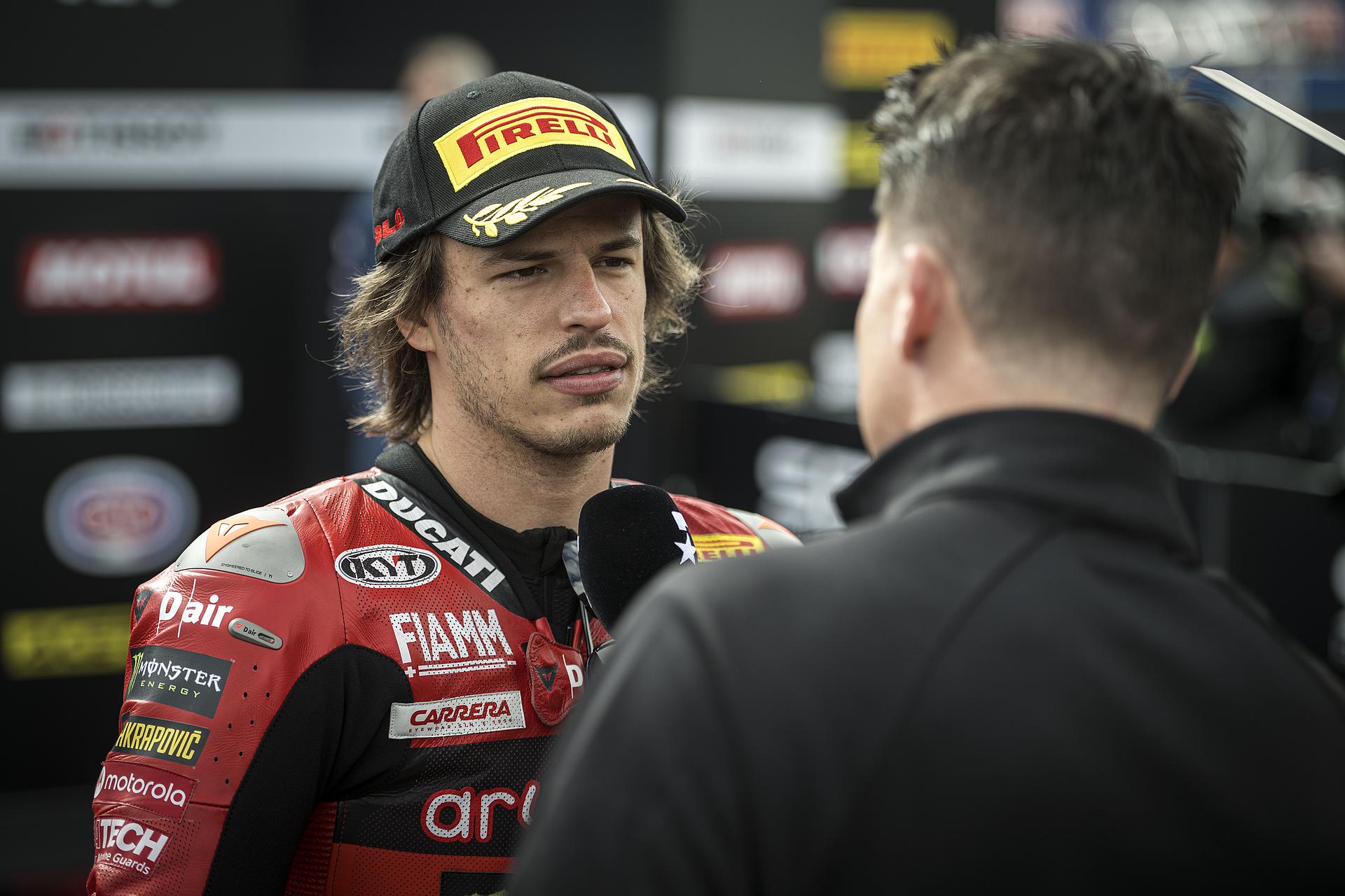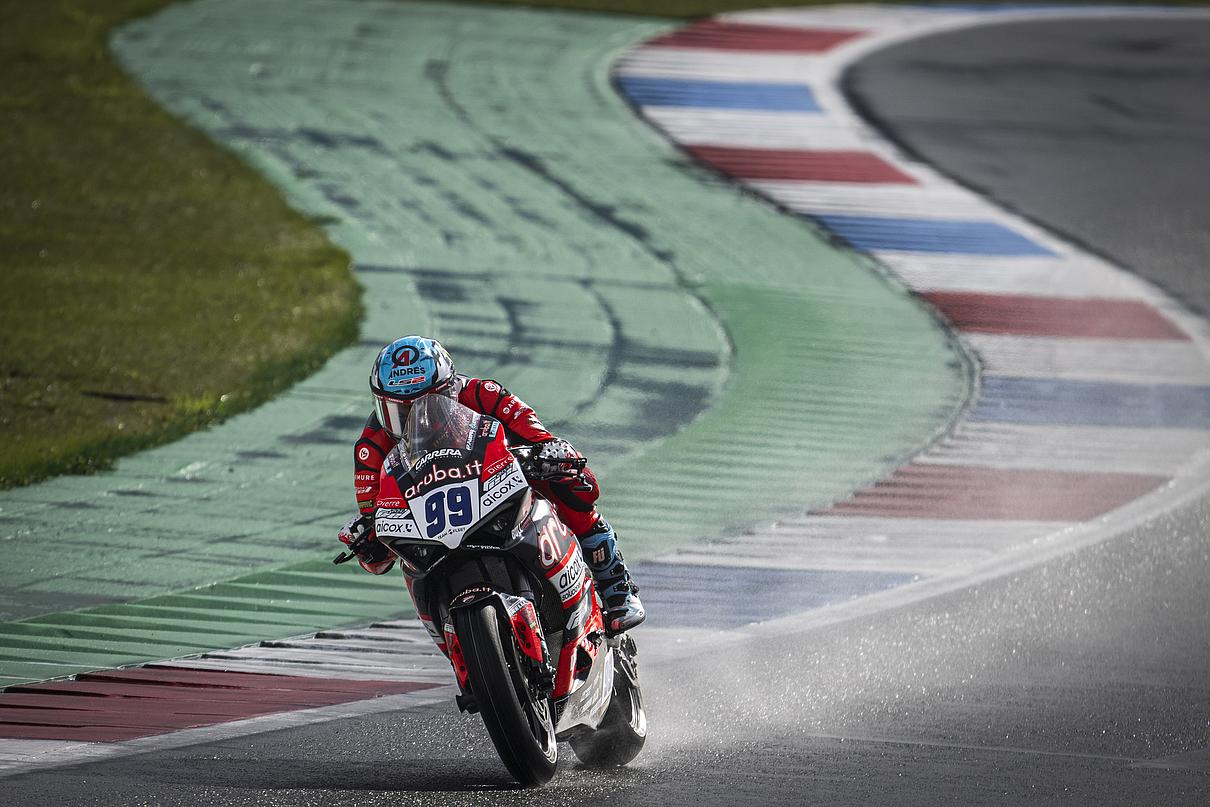 Der Samstag brachte mit unvorhersehbarem Wetter weitere Herausforderungen. Bautista kämpfte im Rennen 1 um den Sieg, wurde jedoch durch eine rote Flagge gestoppt. Spinelli (Barni – Ducati Ersatzfahrer für Petrucci) war der einzige auf Regenreifen und rettet seinen Vorsprung bis zum Abbruch glücklich zum Sieg. Bulega konnte nicht mit der Spitzengruppe mithalten und belegte den 11. Platz.