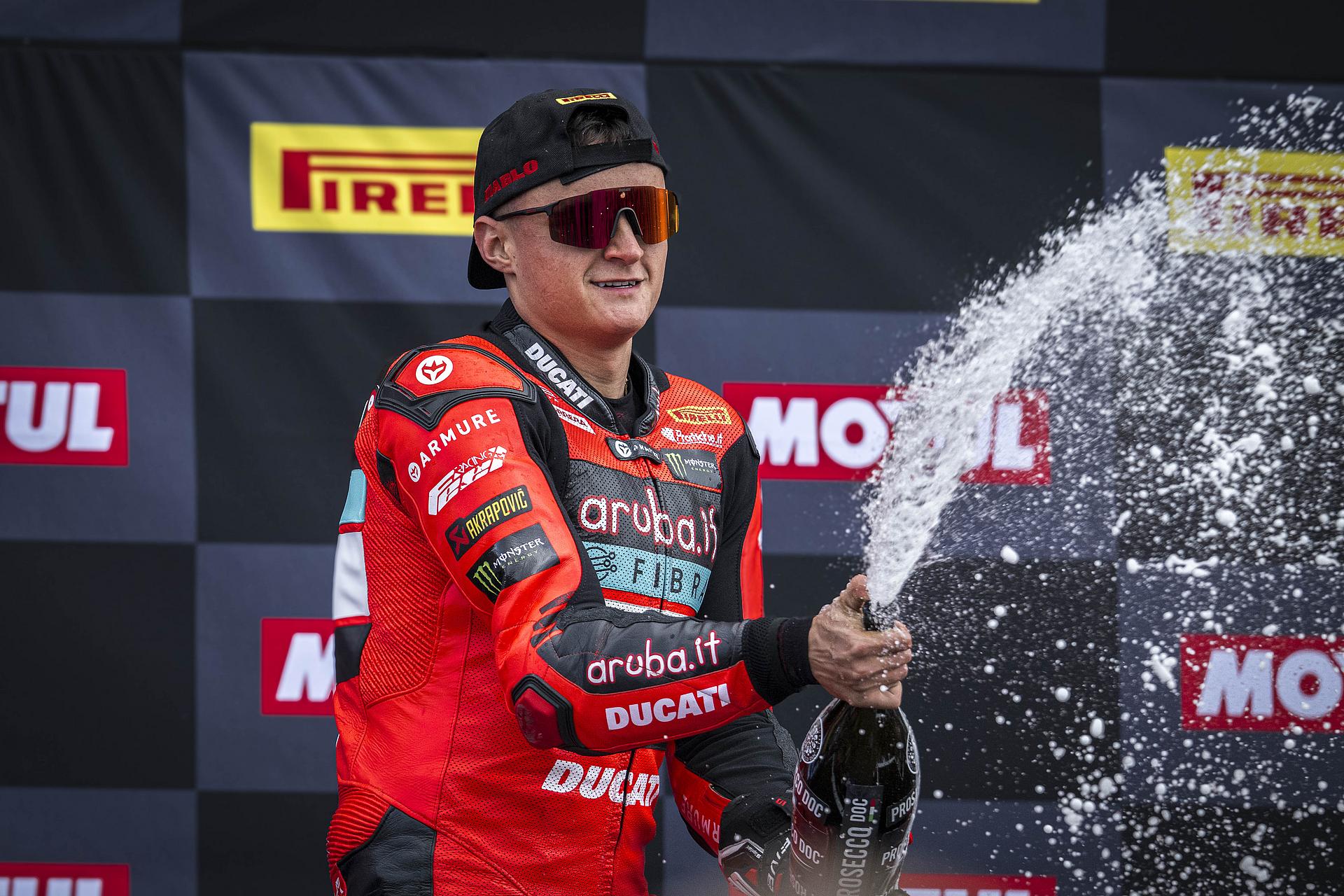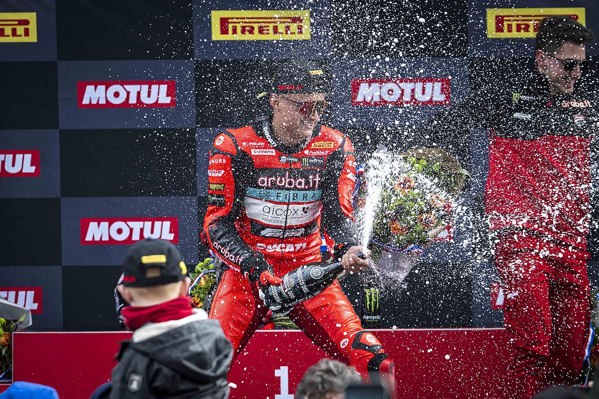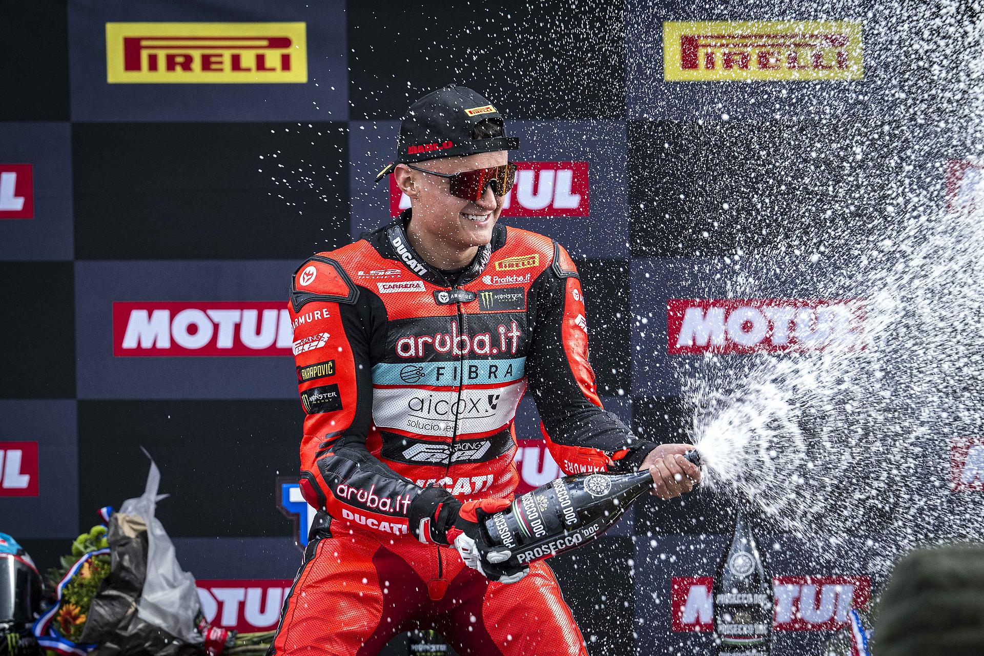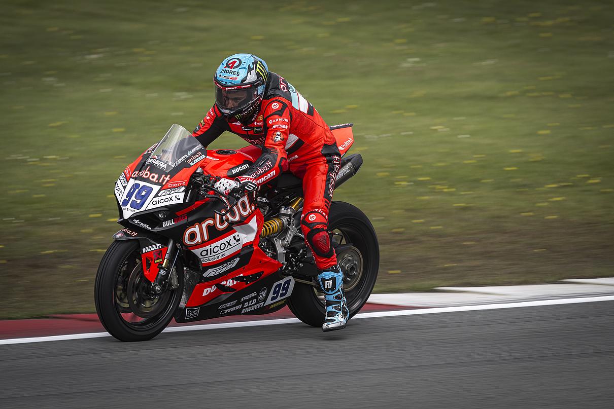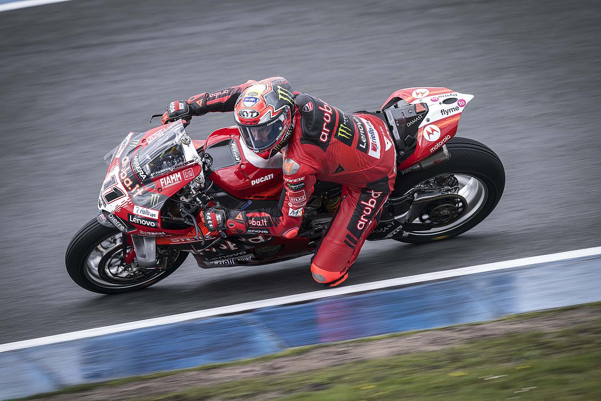Der Samstag brachte mit unvorhersehbarem Wetter weitere Herausforderungen. Bautista kämpfte im Rennen 1 um den Sieg, wurde jedoch durch eine rote Flagge gestoppt. Spinelli (Barni – Ducati Ersatzfahrer für Petrucci) war der einzige auf Regenreifen und rettet seinen Vorsprung bis zum Abbruch glücklich zum Sieg. Bulega konnte nicht mit der Spitzengruppe mithalten und belegte den 11. Platz.