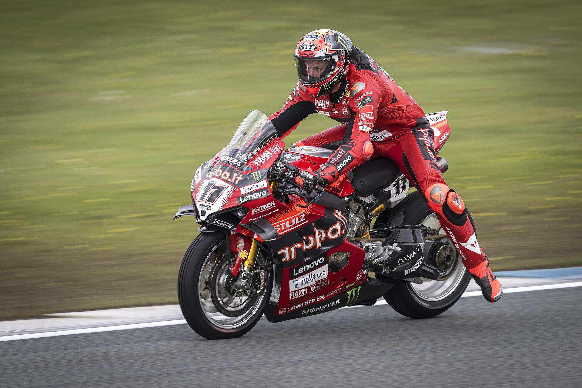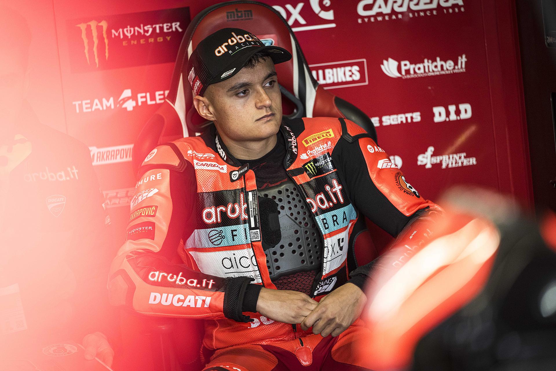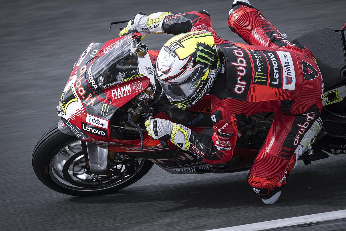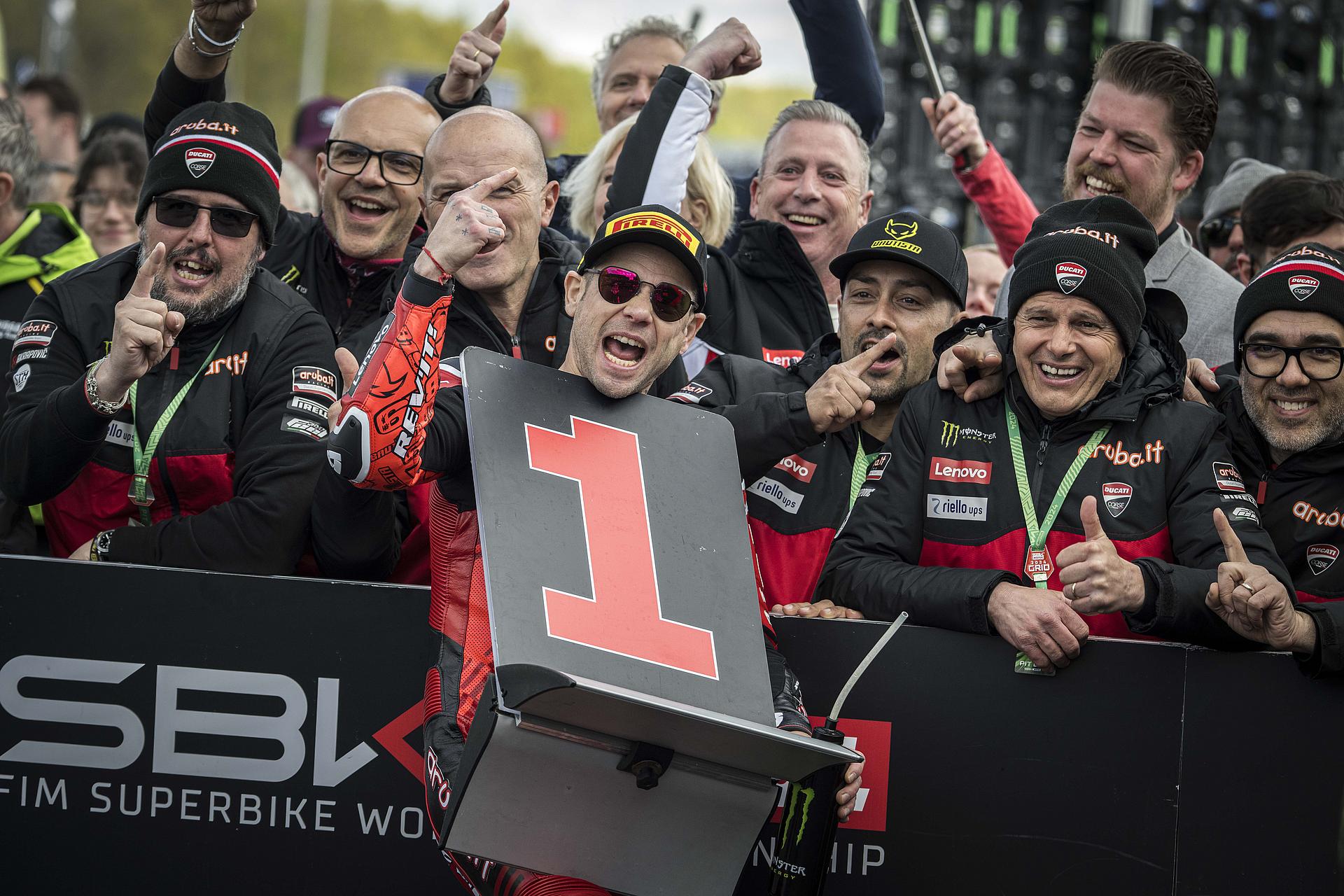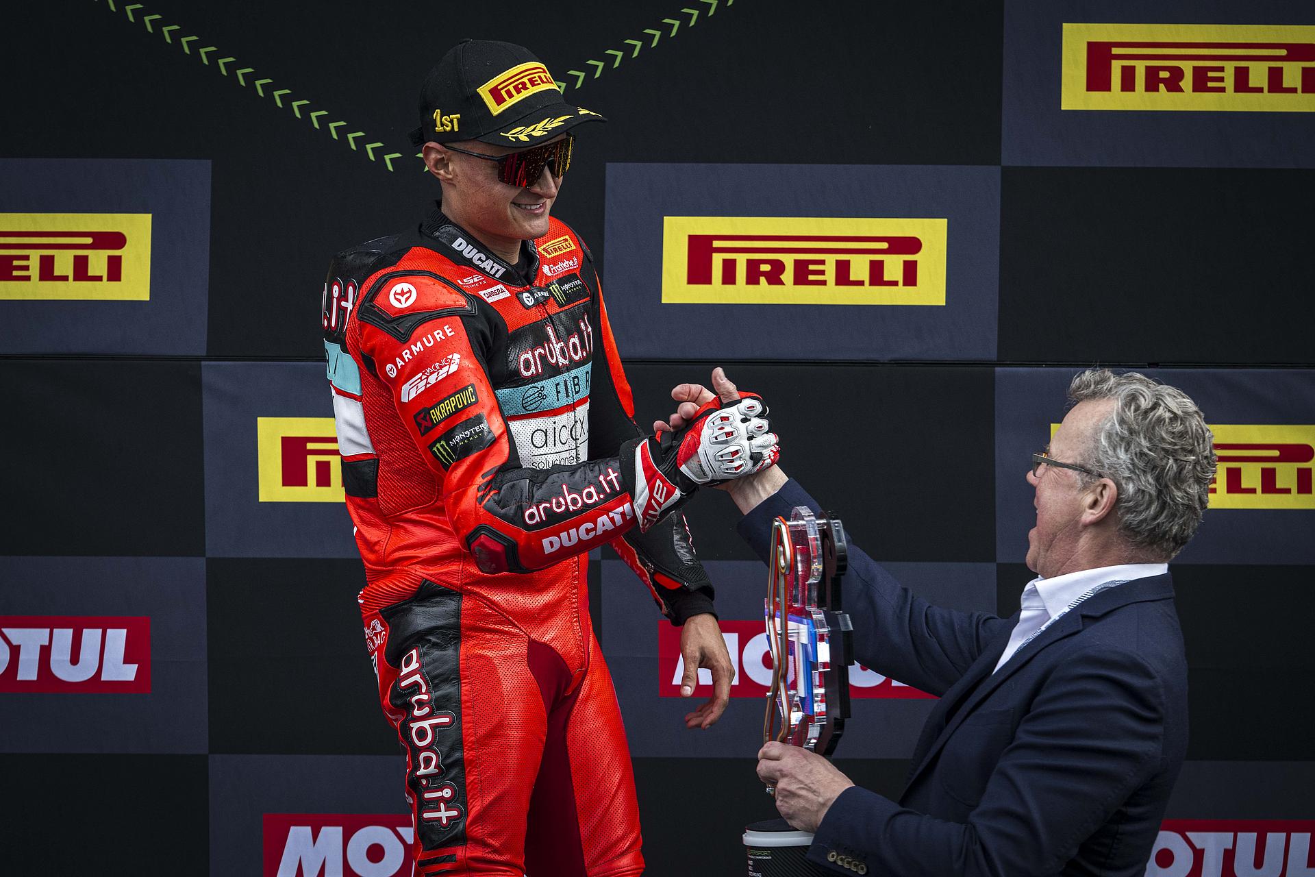 Der Samstag brachte mit unvorhersehbarem Wetter weitere Herausforderungen. Bautista kämpfte im Rennen 1 um den Sieg, wurde jedoch durch eine rote Flagge gestoppt. Spinelli (Barni – Ducati Ersatzfahrer für Petrucci) war der einzige auf Regenreifen und rettet seinen Vorsprung bis zum Abbruch glücklich zum Sieg. Bulega konnte nicht mit der Spitzengruppe mithalten und belegte den 11. Platz.