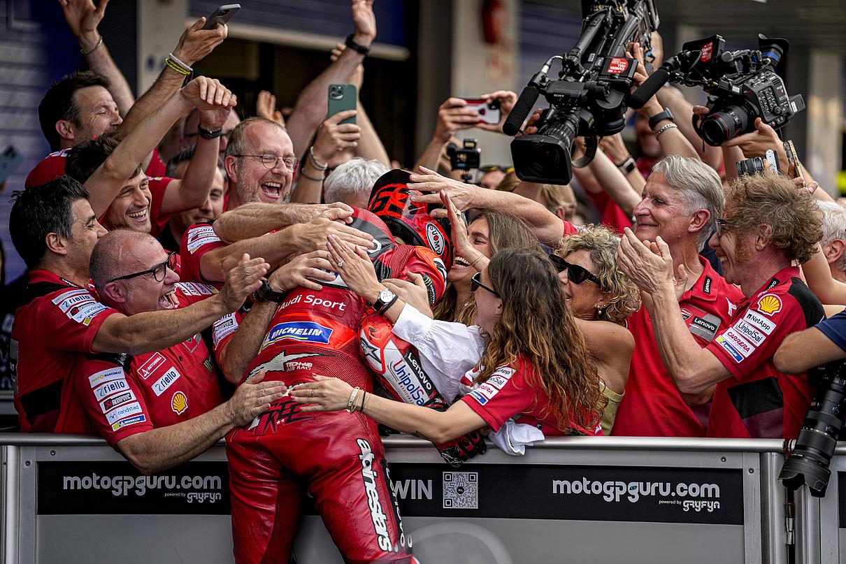 Pecco blieb jedoch konzentriert und schaffte es, Jack Miller wieder einzuholen und den Rückstand auf Brad Binder zu verringern. Wenige Runden vor Schluss schloss der Fahrer aus Chivasso zu dem Südafrikaner auf und überholte ihn fünf Runden vor Schluss. Dank des heutigen Erfolgs kehrt Bagnaia an die Spitze der Gesamtwertung zurück und hat nun 22 Punkte Vorsprung auf seinen Ducati-Kollegen Bezzecchi (VR46 Racing Team). Ducati bleibt an der Spitze der Konstrukteurswertung, während das Ducati Lenovo Team in der Teamwertung den vierten Platz belegt.