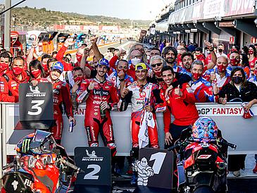mehrBeim Saisonfinale der Moto GP in Valencia fuhren mit Francesco "Pecco" Bagnaia, Jorge Martin und Jack Miller erstmals drei Ducati Piloten auf das Podium der Königsklasse. Mit diesem epochalen Triumph beim finalen Grand Prix des Jahres in Valencia, wurde auch der Sieg für Ducati Lenovo in der Teamwertung sichergestellt.