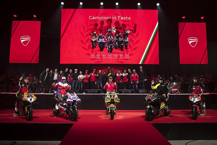 Casalecchio di Reno (Bologna, Italien), 16. Dezember 2023 - In der Unipol Arena herrschte eine Atmosphäre der besonderen Art mit einem Haus voller Fans beim "Campioni in Festa", der Veranstaltung zur Feier der Erfolge von Ducati in der Rennsaison 2023, mit Triumphen in der MotoGP, WorldSBK und WorldSSP Rennserie.