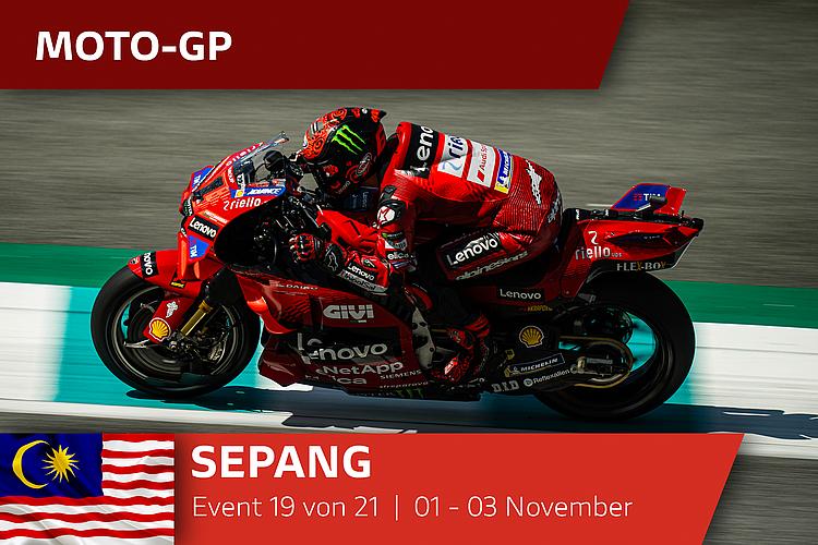 Doppeltes Podium für das Ducati Lenovo Team in Sepang. Francesco Bagnaia holt in Sepang seinen zehnten Saisonsieg, Enea Bastianini wird Dritter. Jorge Martín ist auf der Ducati des Pramac Racing Teams Zweiter. Alex Márquez (Gresini Racing MotoGP) ist Vierter. Neuer Rekord für Ducati: 18 Siege in einer einzigen MotoGP-Saison