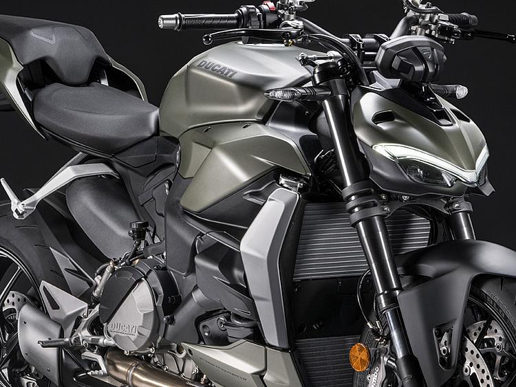 Die Palette der Ducati Streetfighter V2 wird durch die Einführung einer neuen matten, metallic-grünen Lackierung erweitert, mit der die Designmerkmale des Motorrads betont werden. Das matte Finish passt perfekt zum Kontext der mechanischen Teile, während die metallische Maserung ein sehr deutliches Spiel der Kontraste auf den verschiedenen Oberflächen erzeugt.