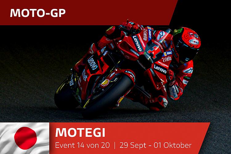 Francesco Bagnaia belegte beim Gran Prix von Japan am Samstag im Sprintrace Platz 3. Am Sonntag konnte er das Rennen auf Platz zwei hinter Jorge Martin beenden. Die Rennleitung musste das Rennen aufgrund der widrigen Wetterbedingungen nach 12 von 24 Runden abbrechen.